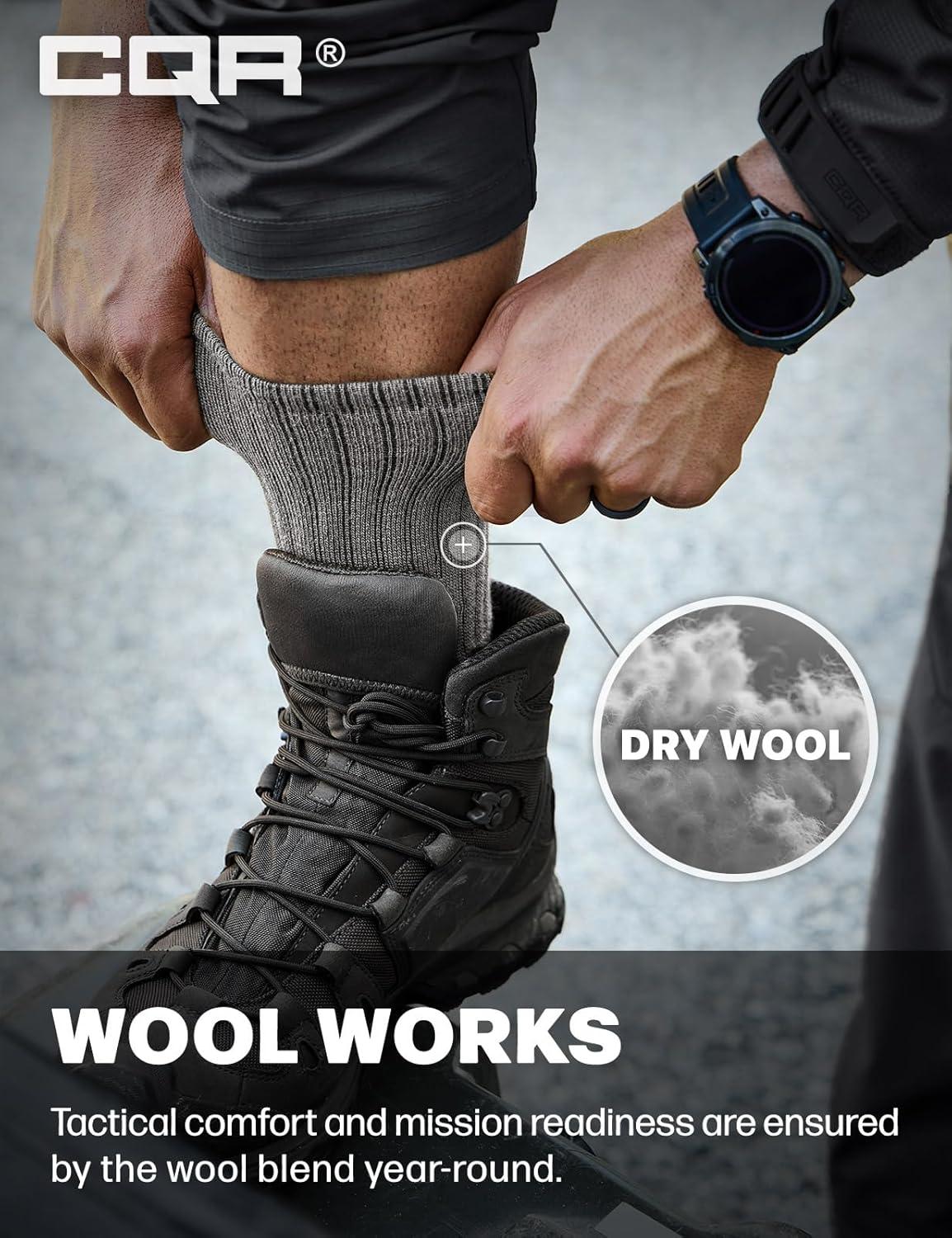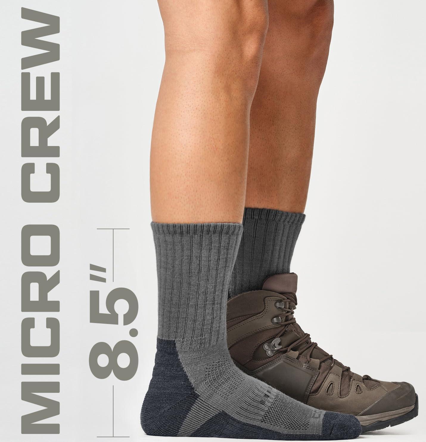 imageCQR 3 Pack Men and Women Wool Hiking Mid Calf Crew Socks Moisture Wicking Breathable Outdoor Tactical Cushion boot SocksRex Tac 85in Light Grey