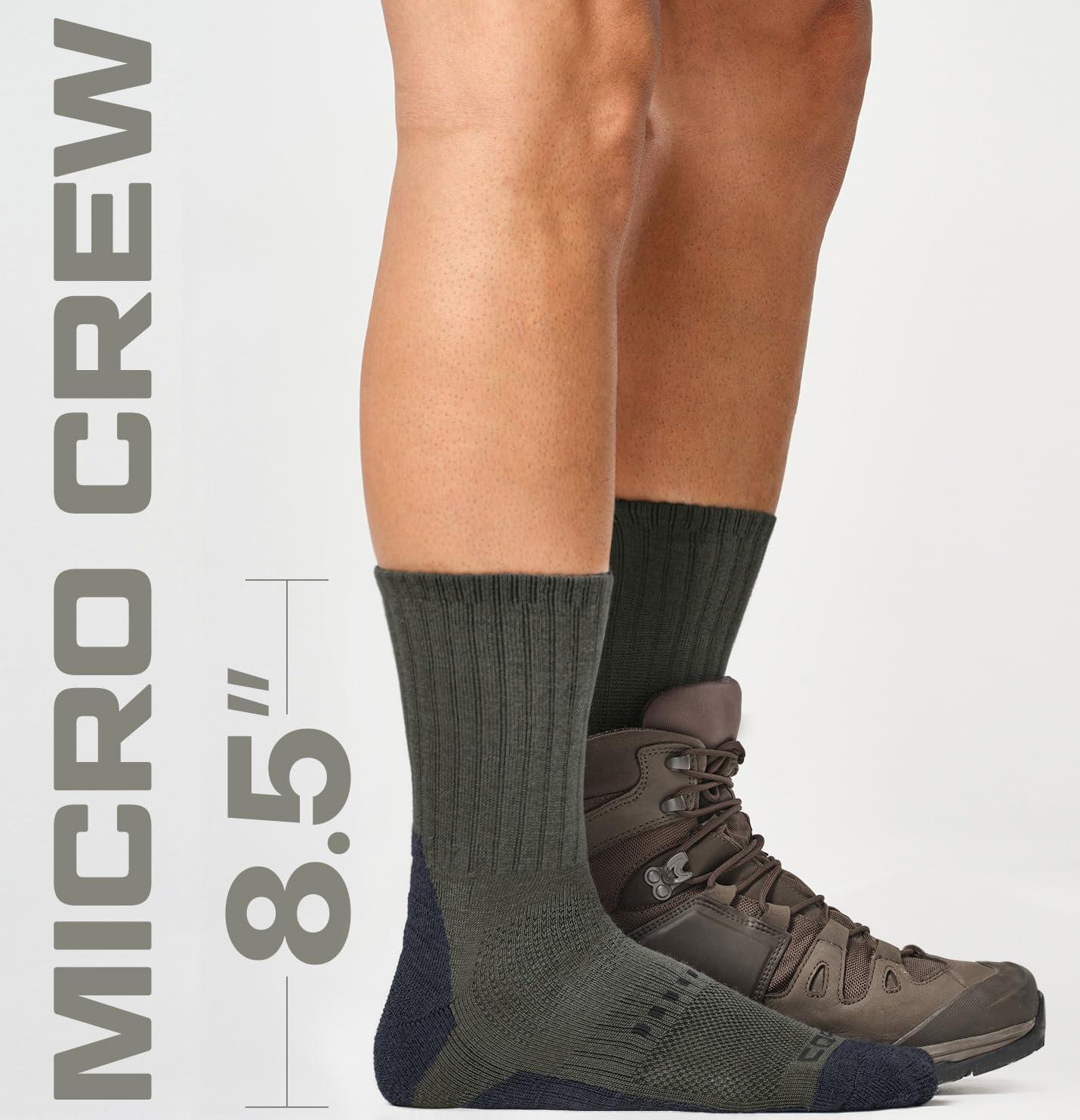The mid-calf design provides boot protection, while the micro crew option offers a lighter, breathable fit for warmer weather or casual wear. Both options are built with durability and comfort in mind, designed to support all your outdoor activities, from hiking to military missions.