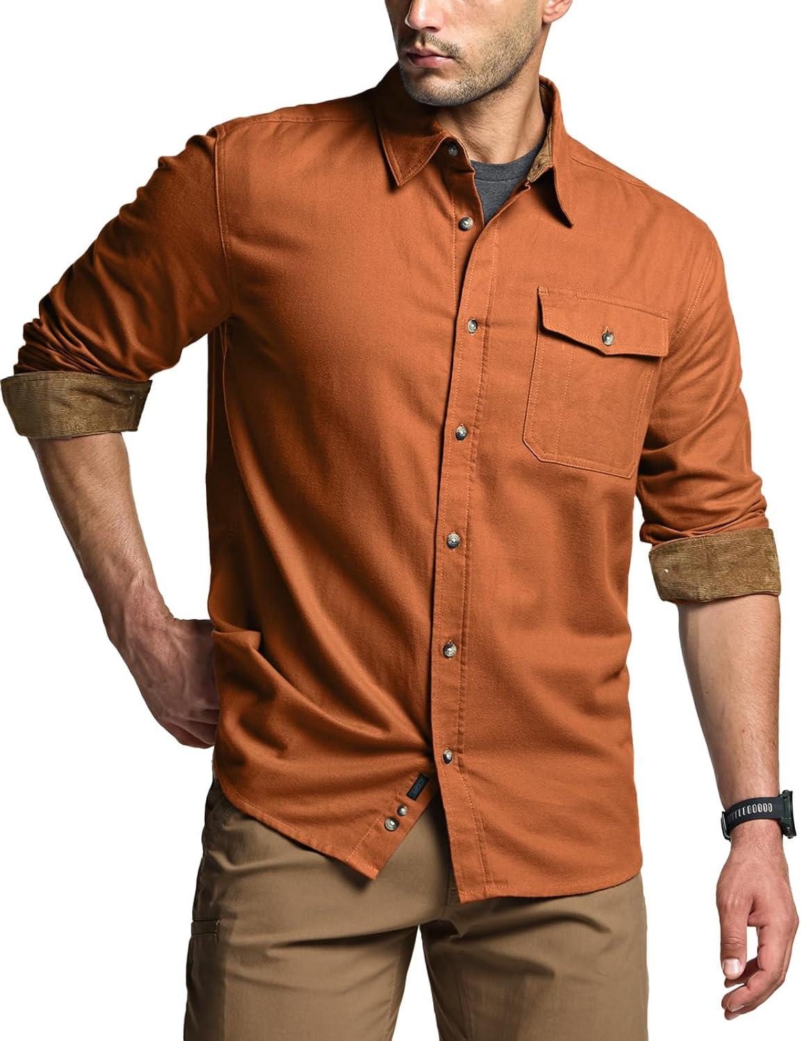 CQR Men’s 100% All Cotton Button Down Flannel Shirts, Long Sleeve Brushed Warm Soft Casual Outdoor Plaid Shirt(Corduroy Camel)