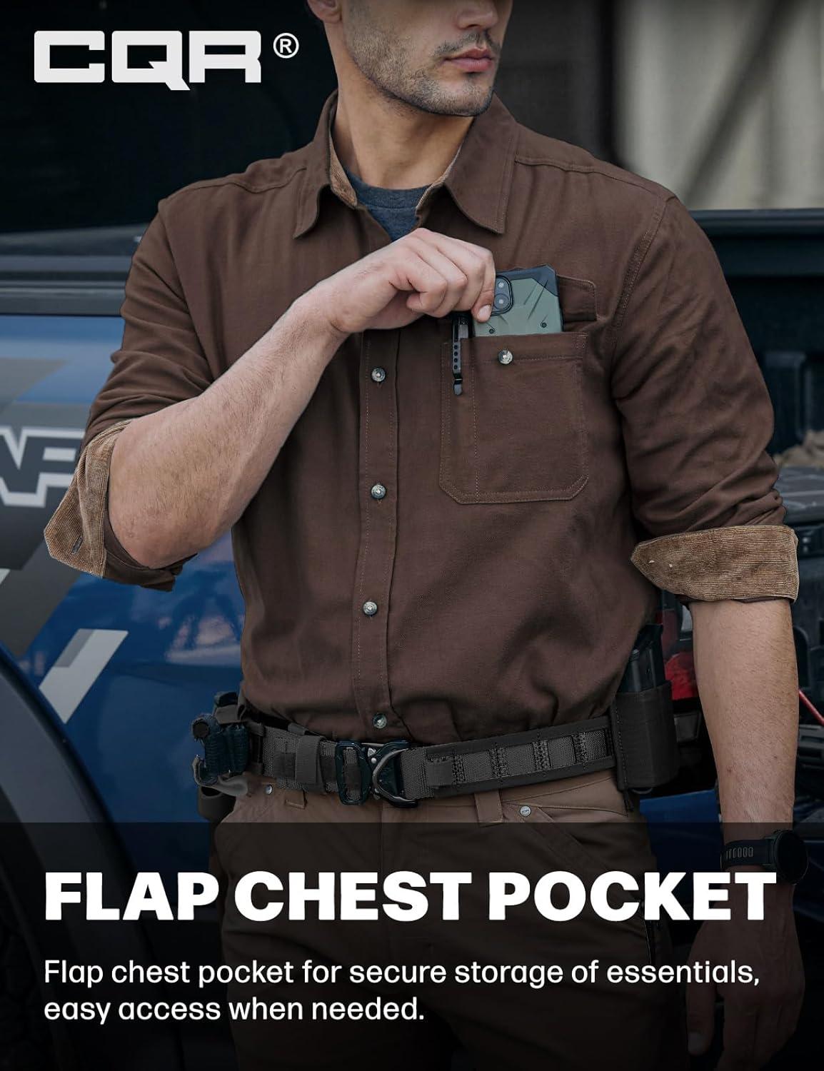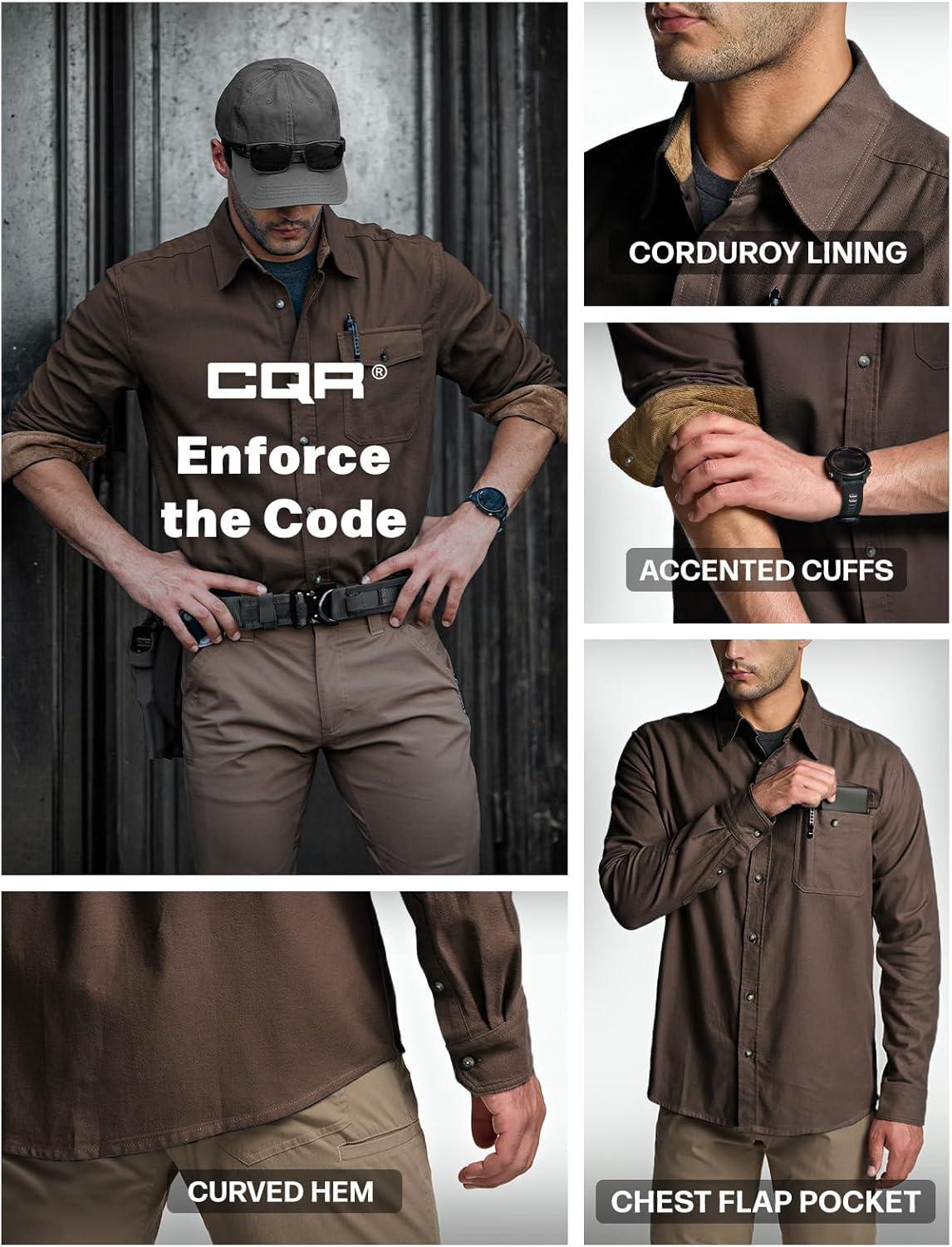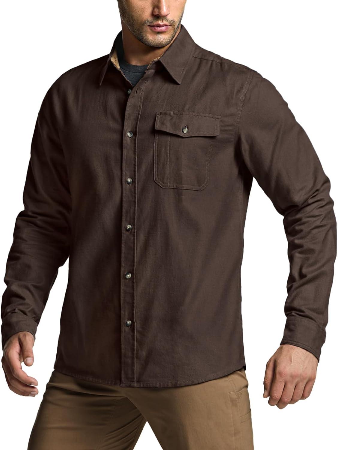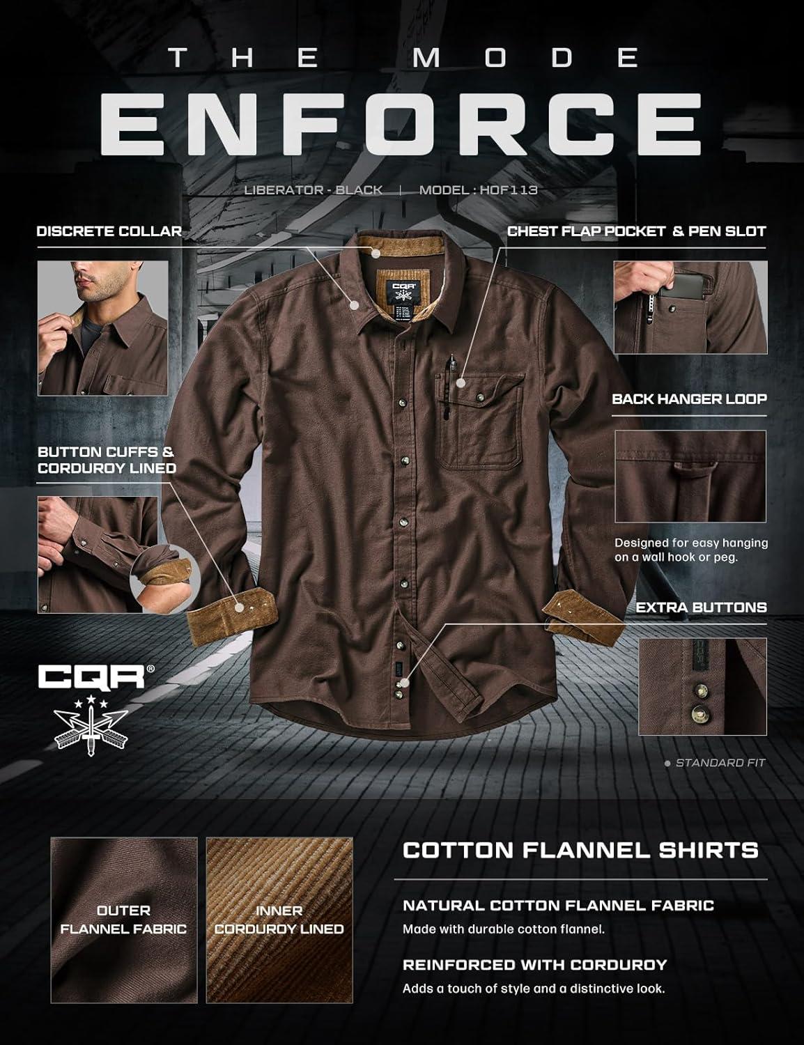 imageCQR Mens 100 All Cotton Button Down Flannel Shirts Long Sleeve Brushed Warm Soft Casual Outdoor Plaid ShirtCorduroy Dark Brown