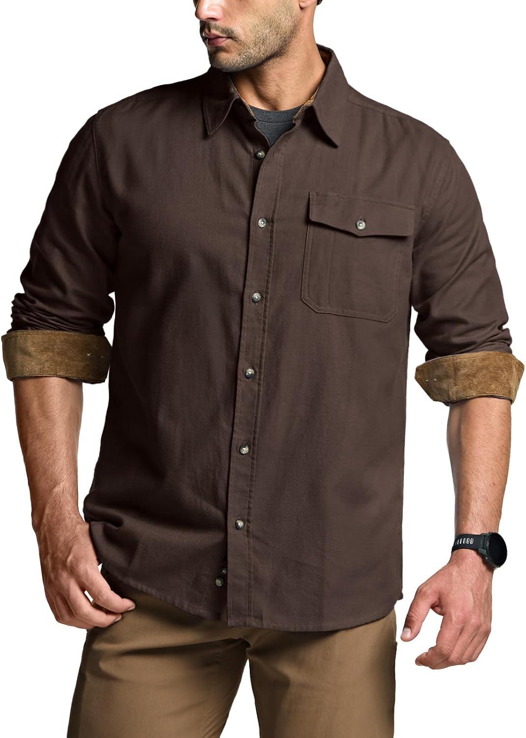 CQR Men's 100% All Cotton Button Down Flannel Shirts, Long Sleeve Brushed Warm Soft Casual Outdoor Plaid Shirt(Corduroy Dark Brown)