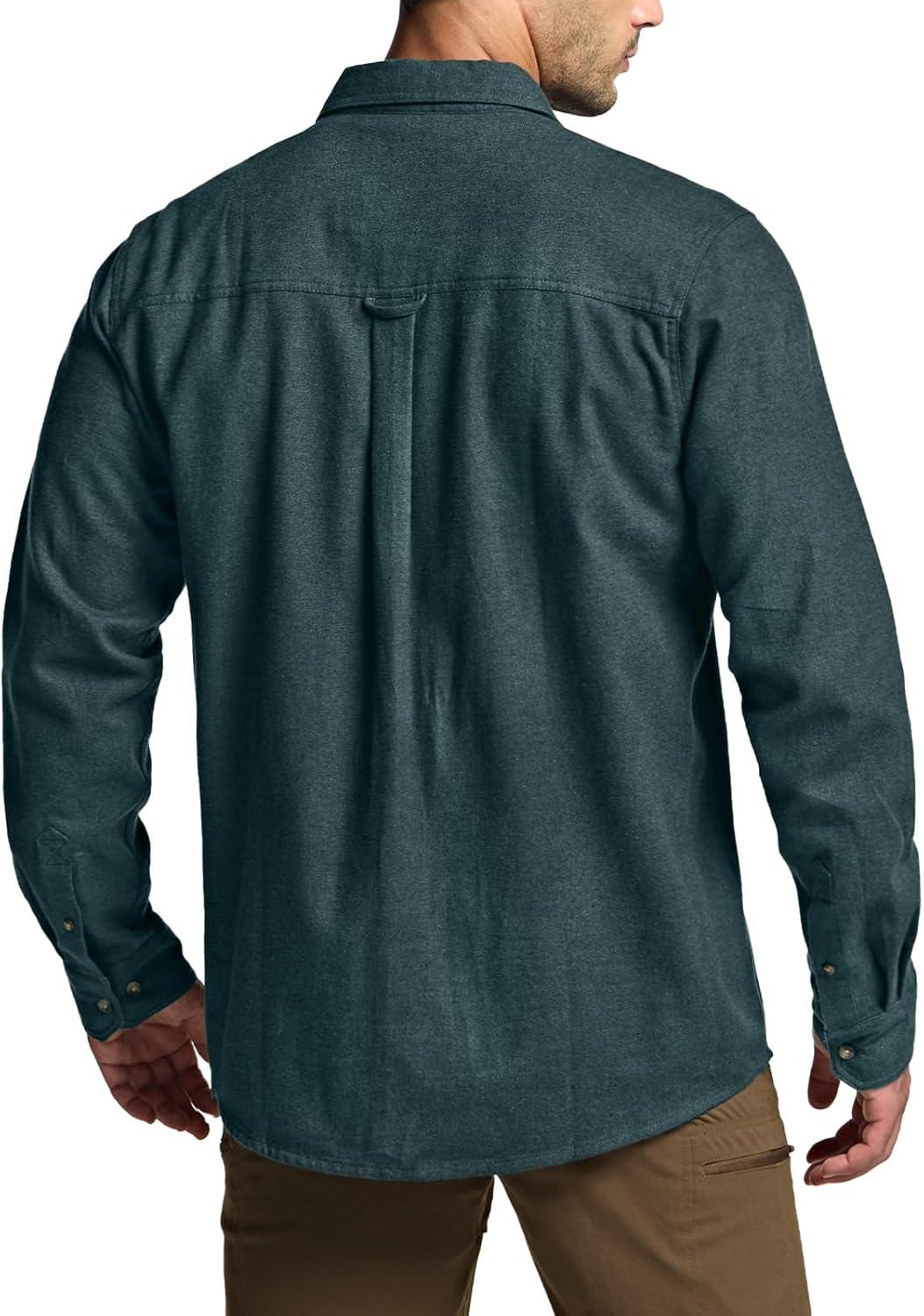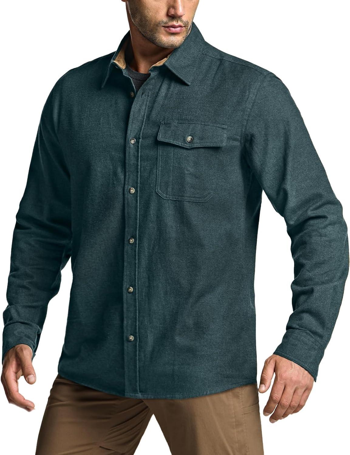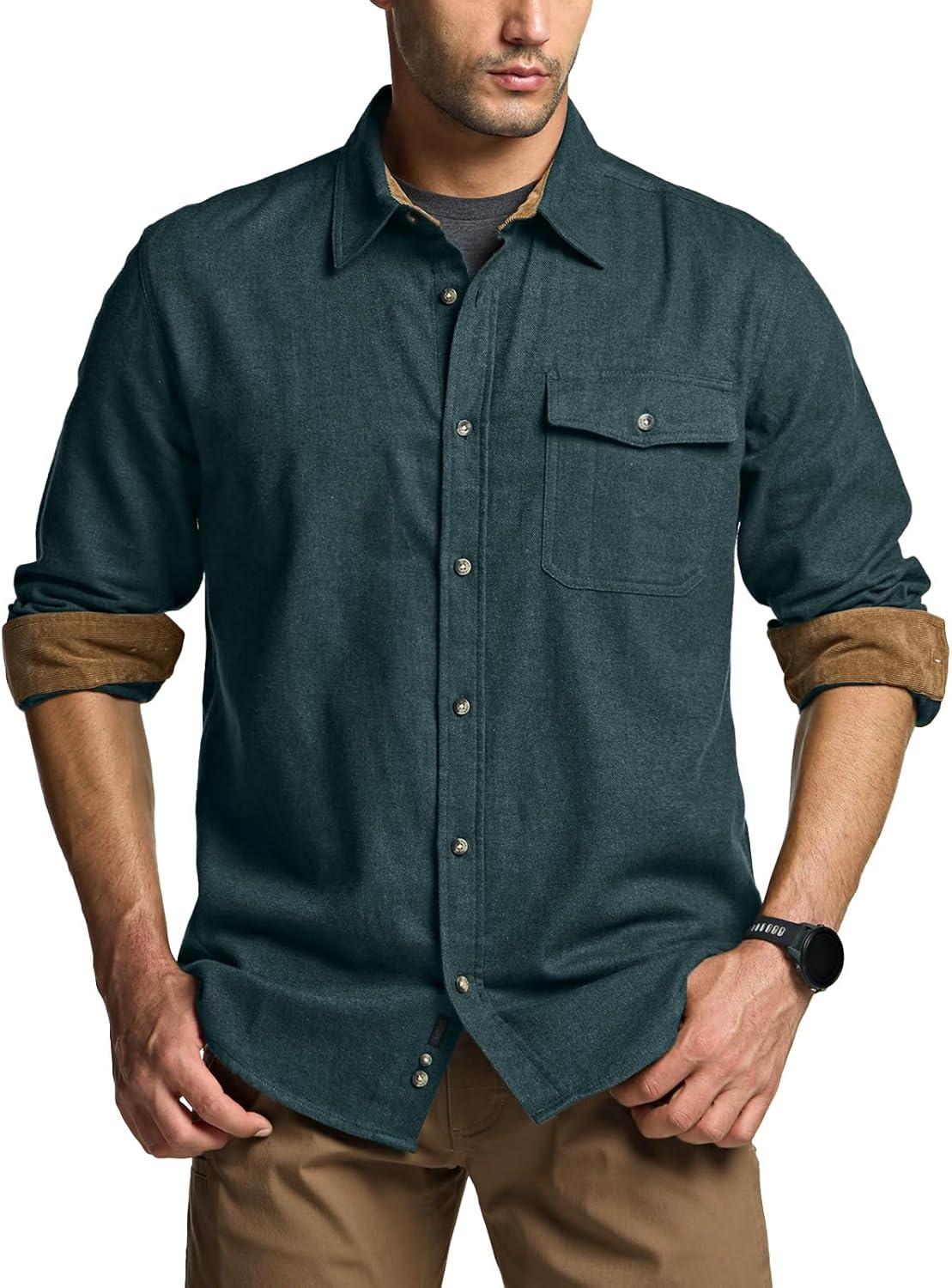imageCQR Mens 100 All Cotton Button Down Flannel Shirts Long Sleeve Brushed Warm Soft Casual Outdoor Plaid ShirtCorduroy Peacock Blue