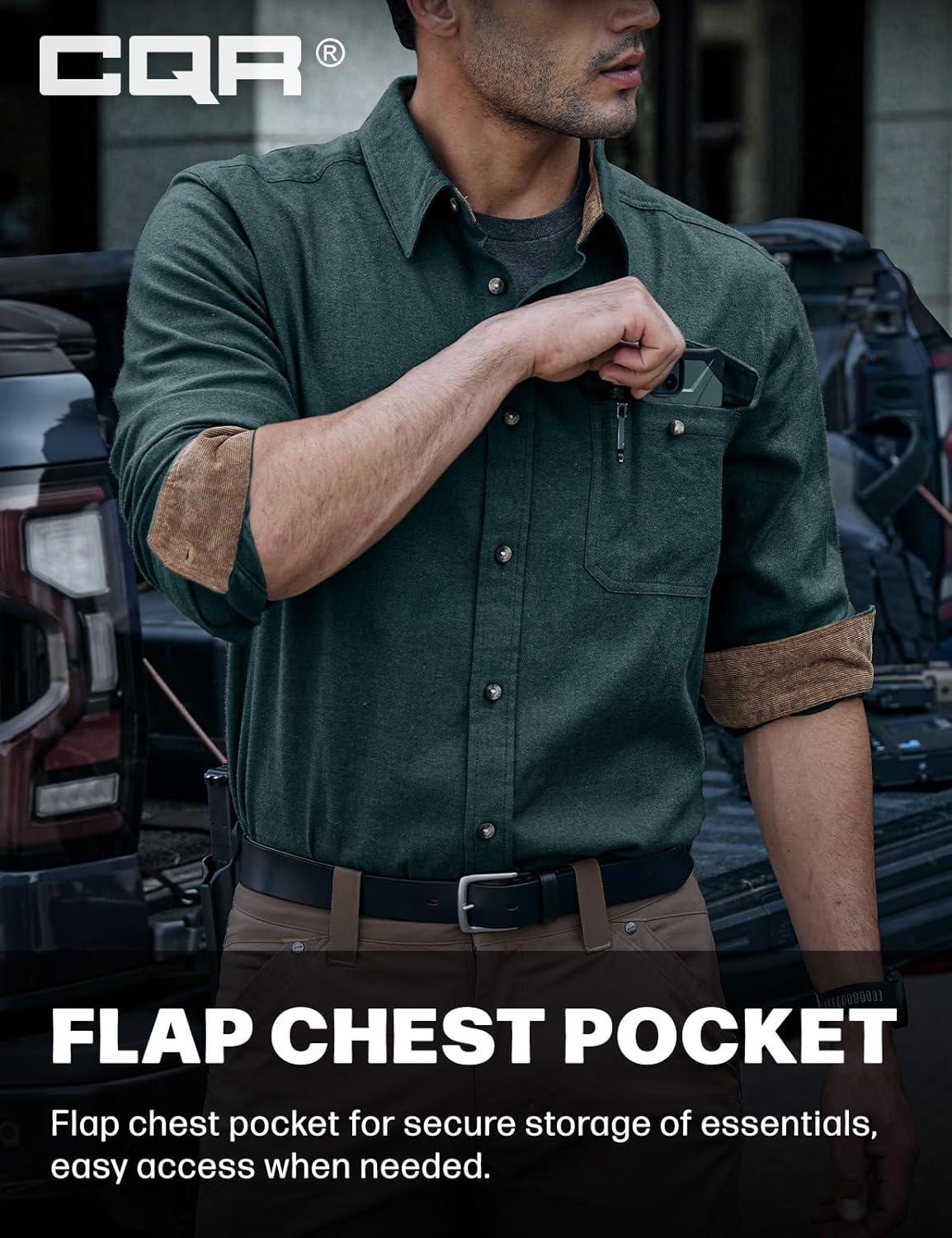 imageCQR Mens 100 All Cotton Button Down Flannel Shirts Long Sleeve Brushed Warm Soft Casual Outdoor Plaid ShirtCorduroy Forest Green