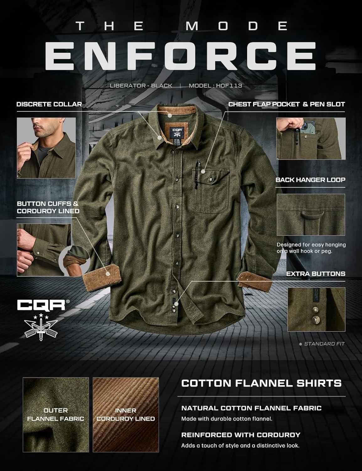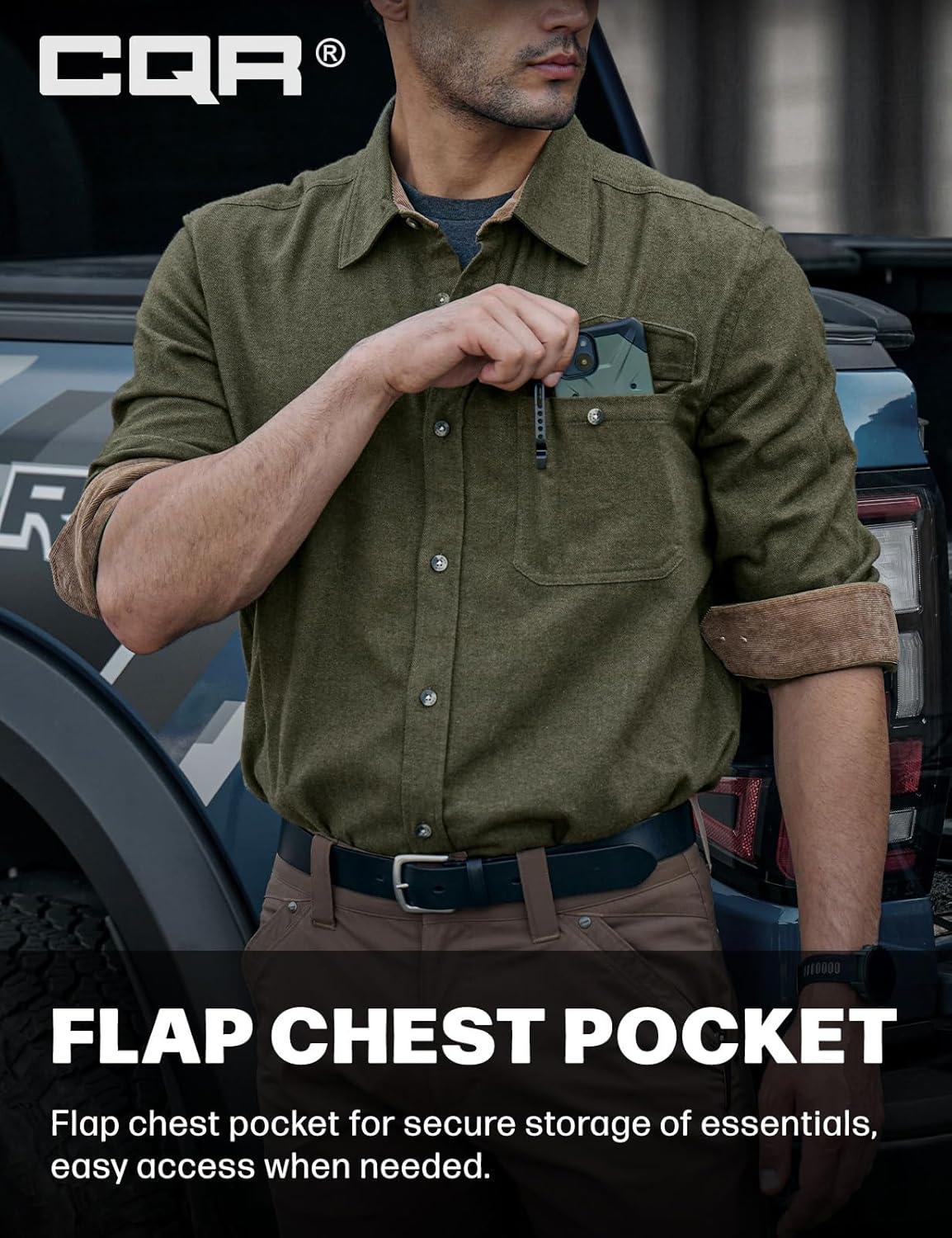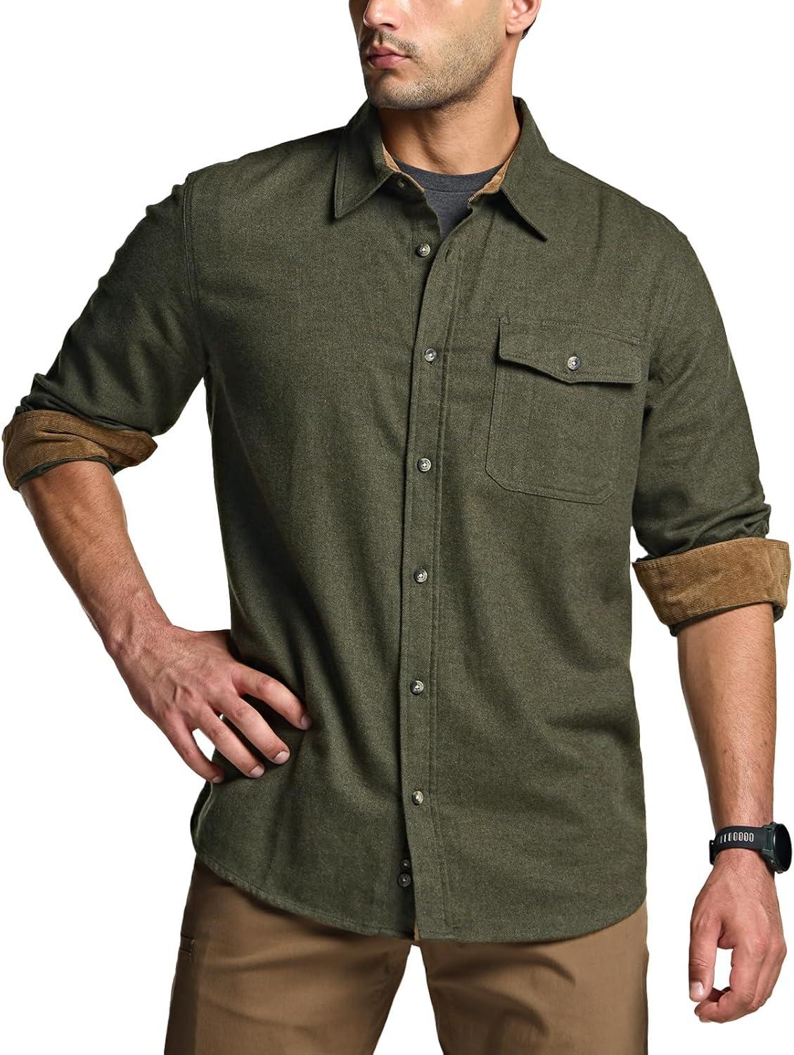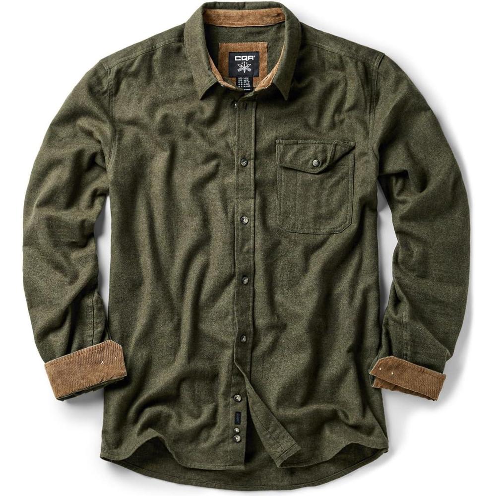 imageCQR Mens 100 All Cotton Button Down Flannel Shirts Long Sleeve Brushed Warm Soft Casual Outdoor Plaid ShirtCorduroy Hunter Green