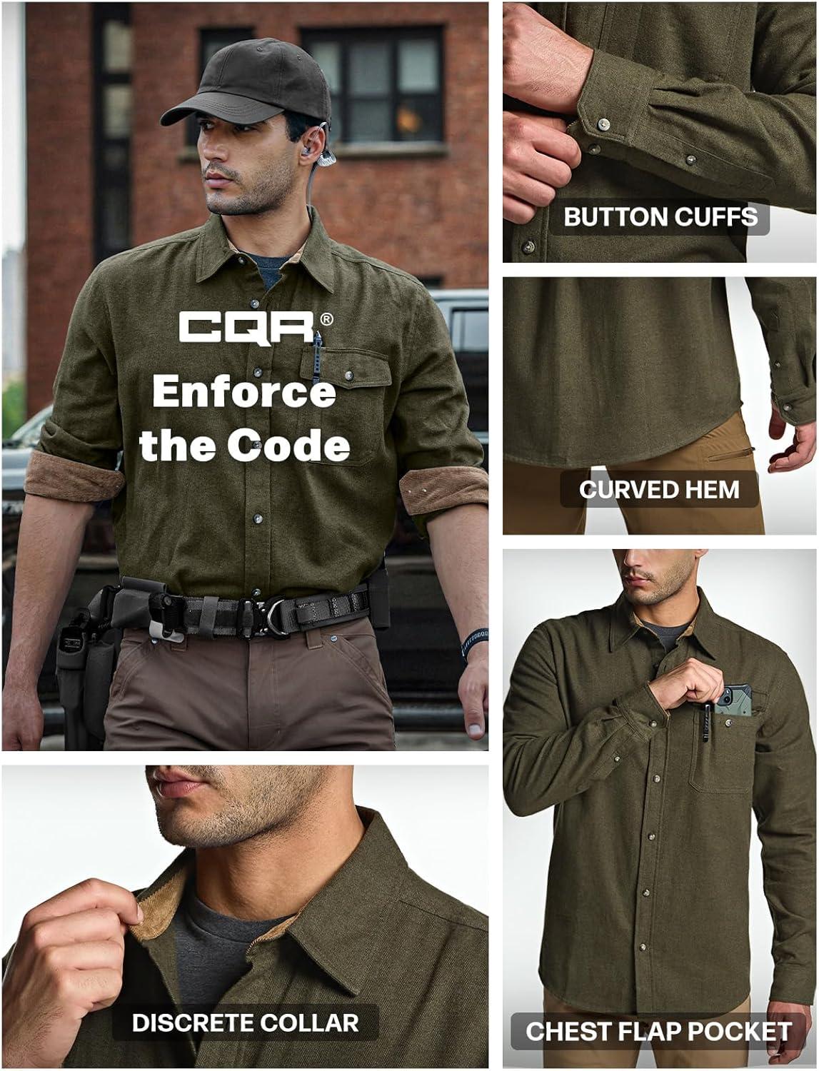 imageCQR Mens 100 All Cotton Button Down Flannel Shirts Long Sleeve Brushed Warm Soft Casual Outdoor Plaid ShirtCorduroy Grey