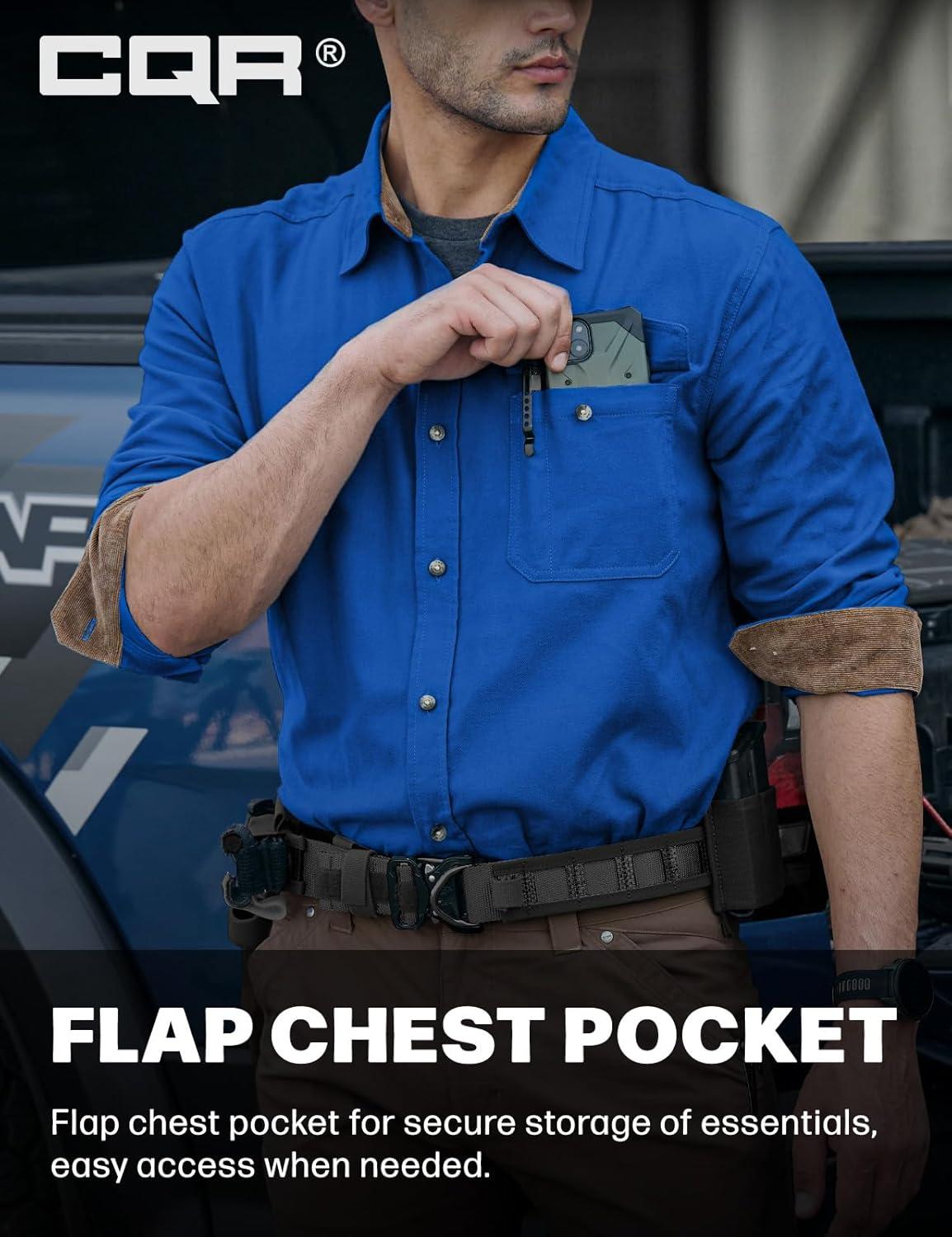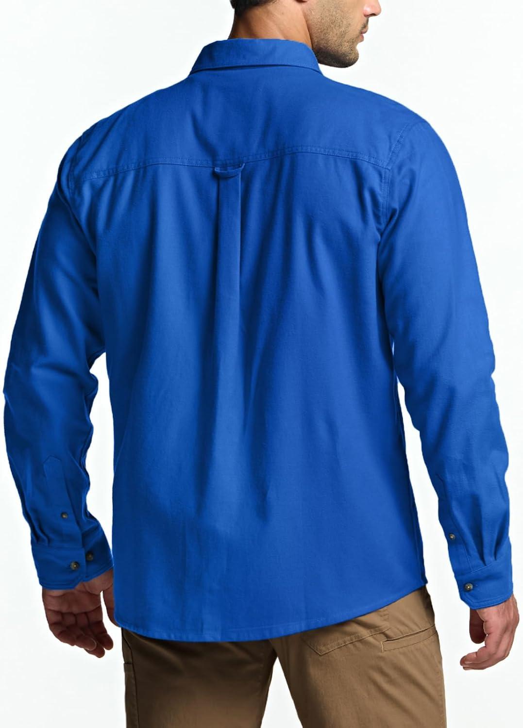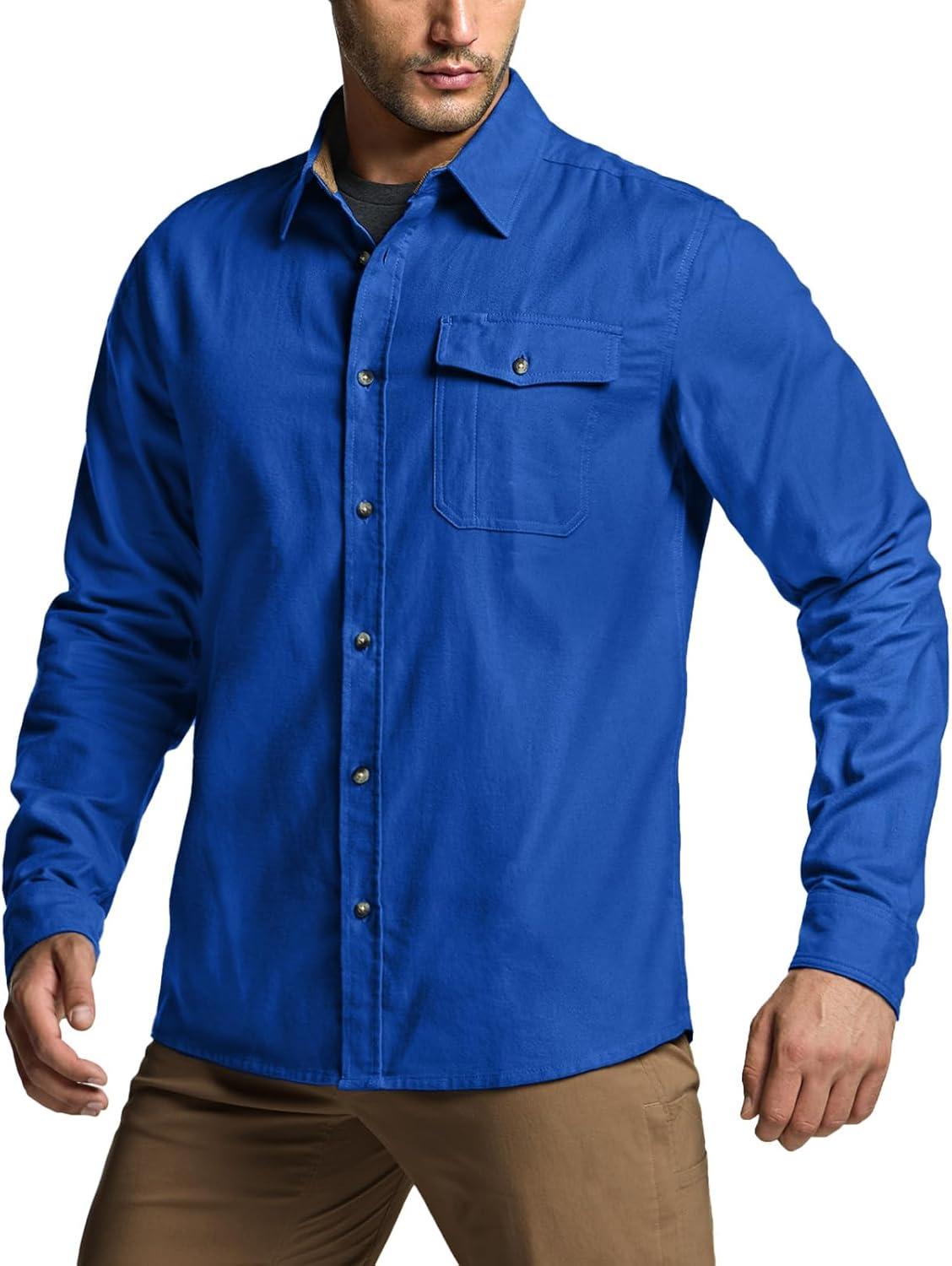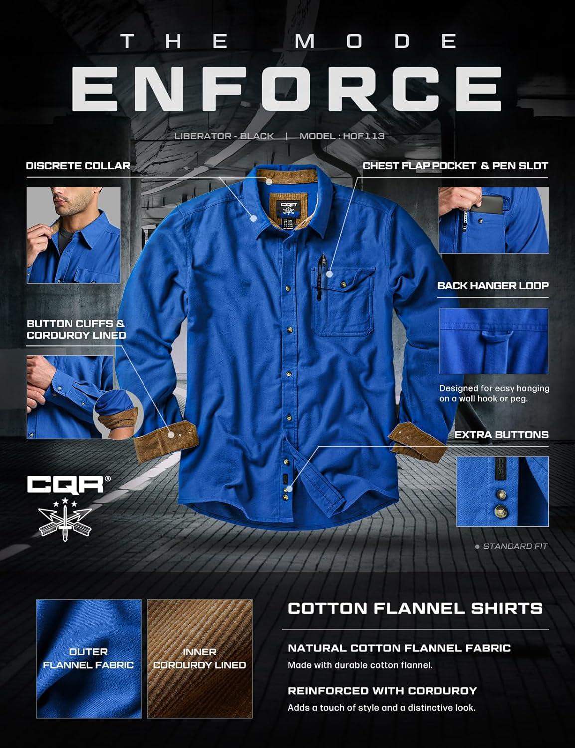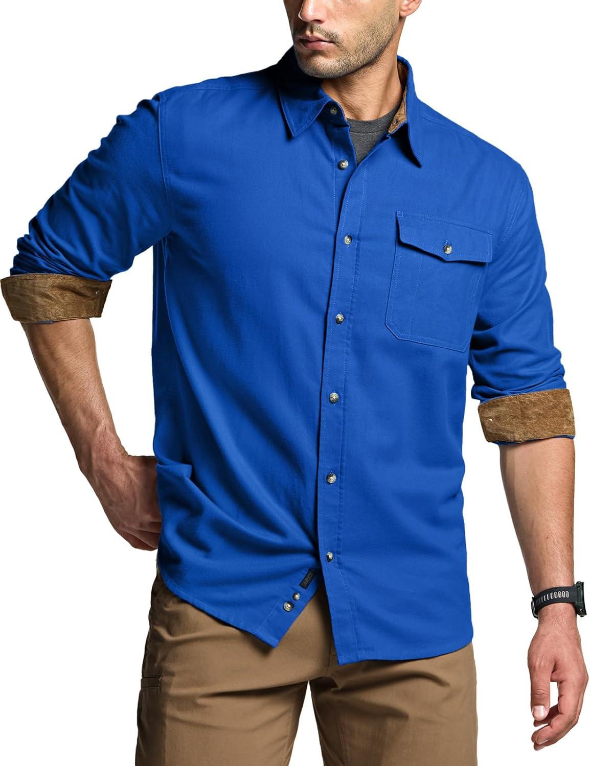 imageCQR Mens 100 All Cotton Button Down Flannel Shirts Long Sleeve Brushed Warm Soft Casual Outdoor Plaid ShirtCorduroy Lapis Blue