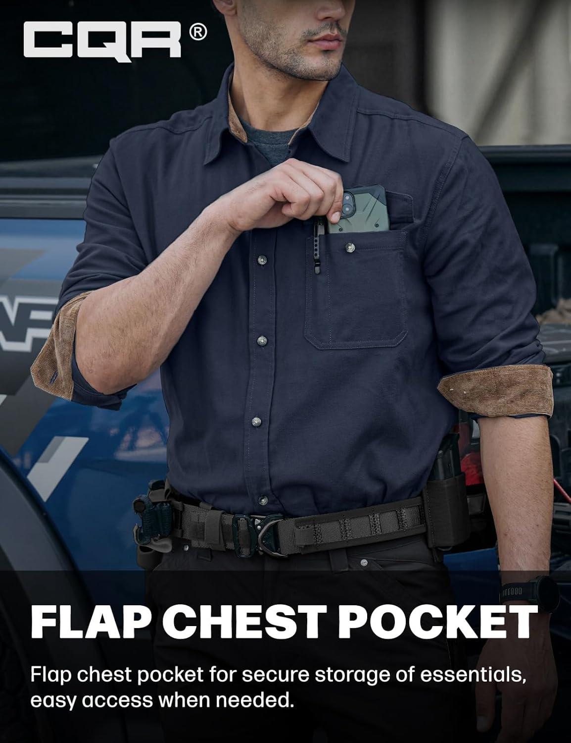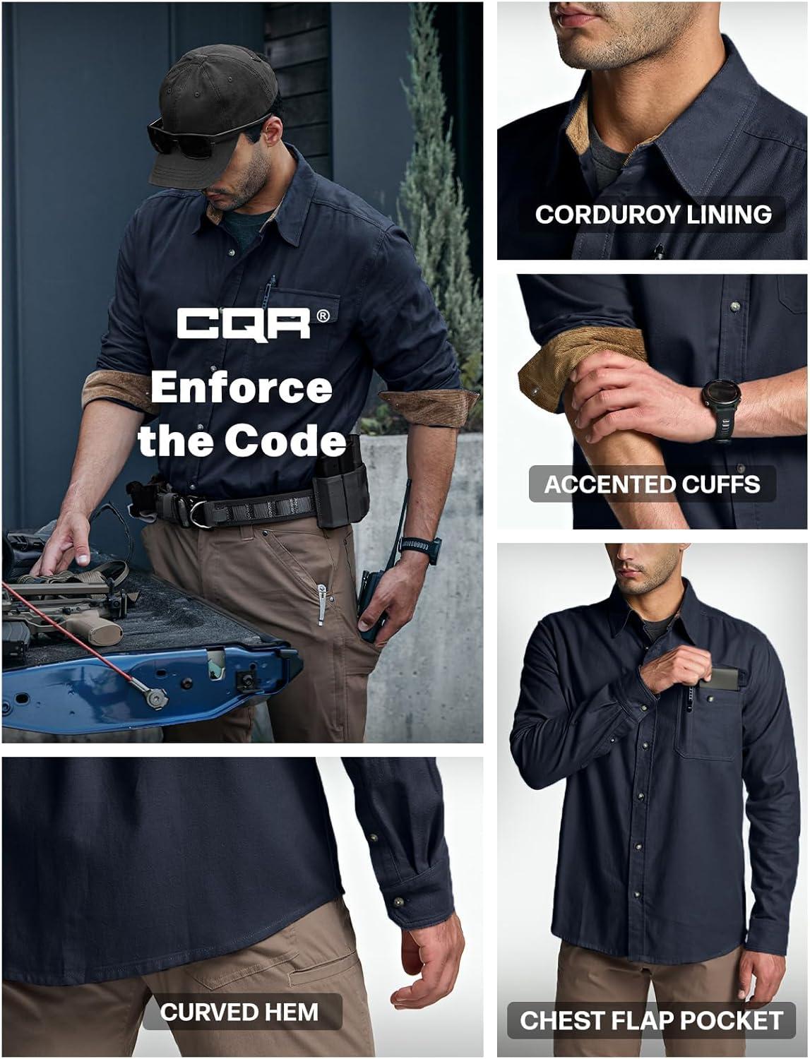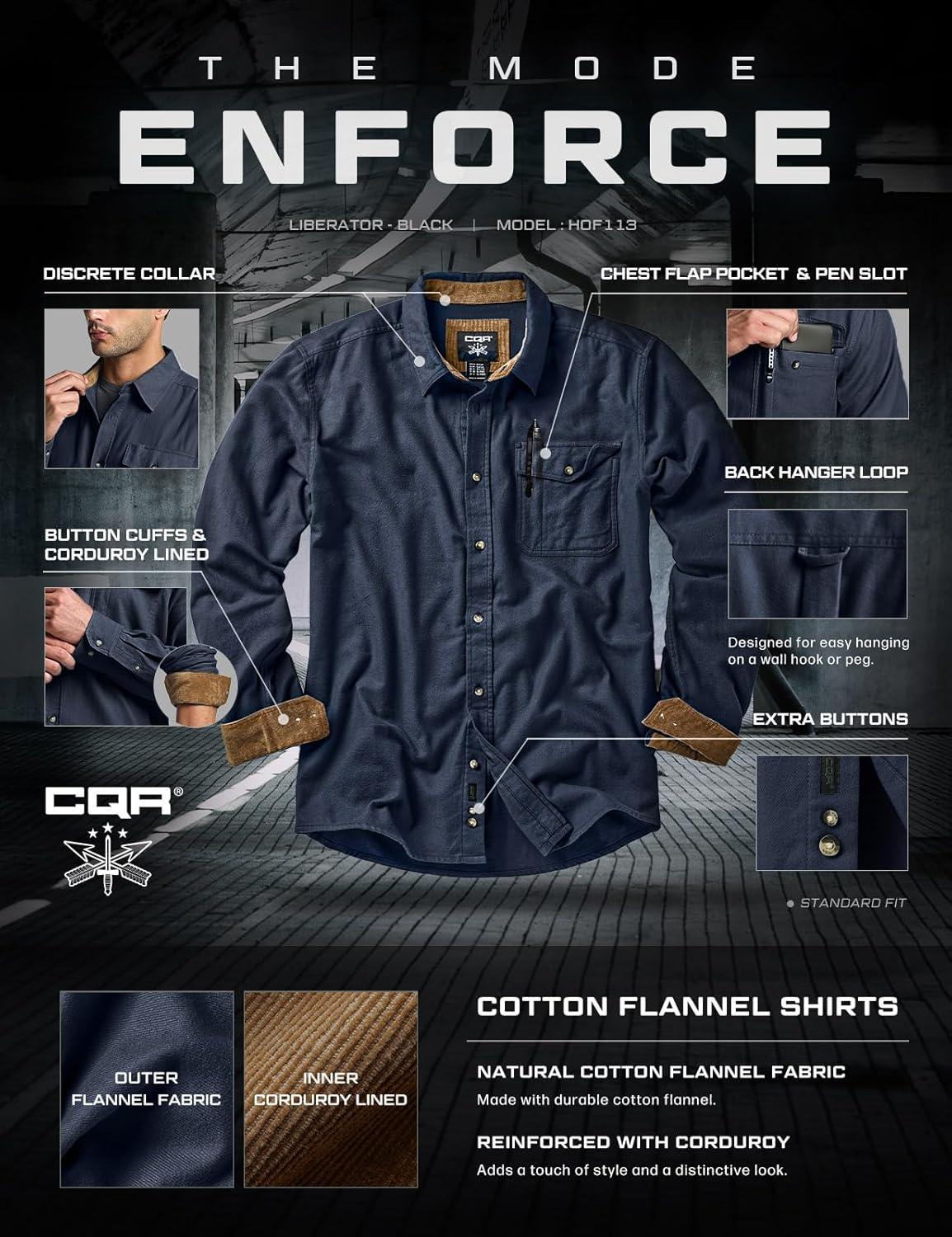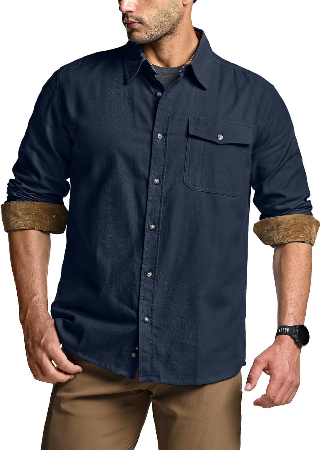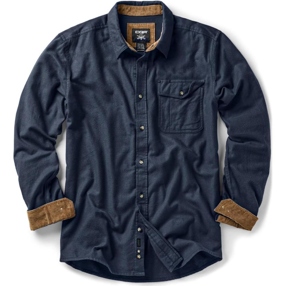 imageCQR Mens 100 All Cotton Button Down Flannel Shirts Long Sleeve Brushed Warm Soft Casual Outdoor Plaid ShirtCorduroy Midnight Navy