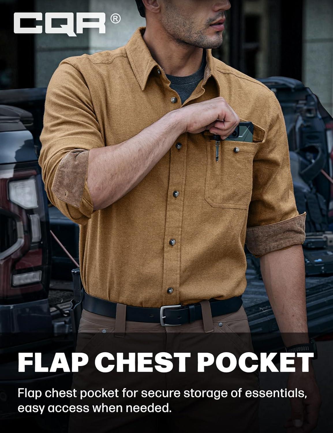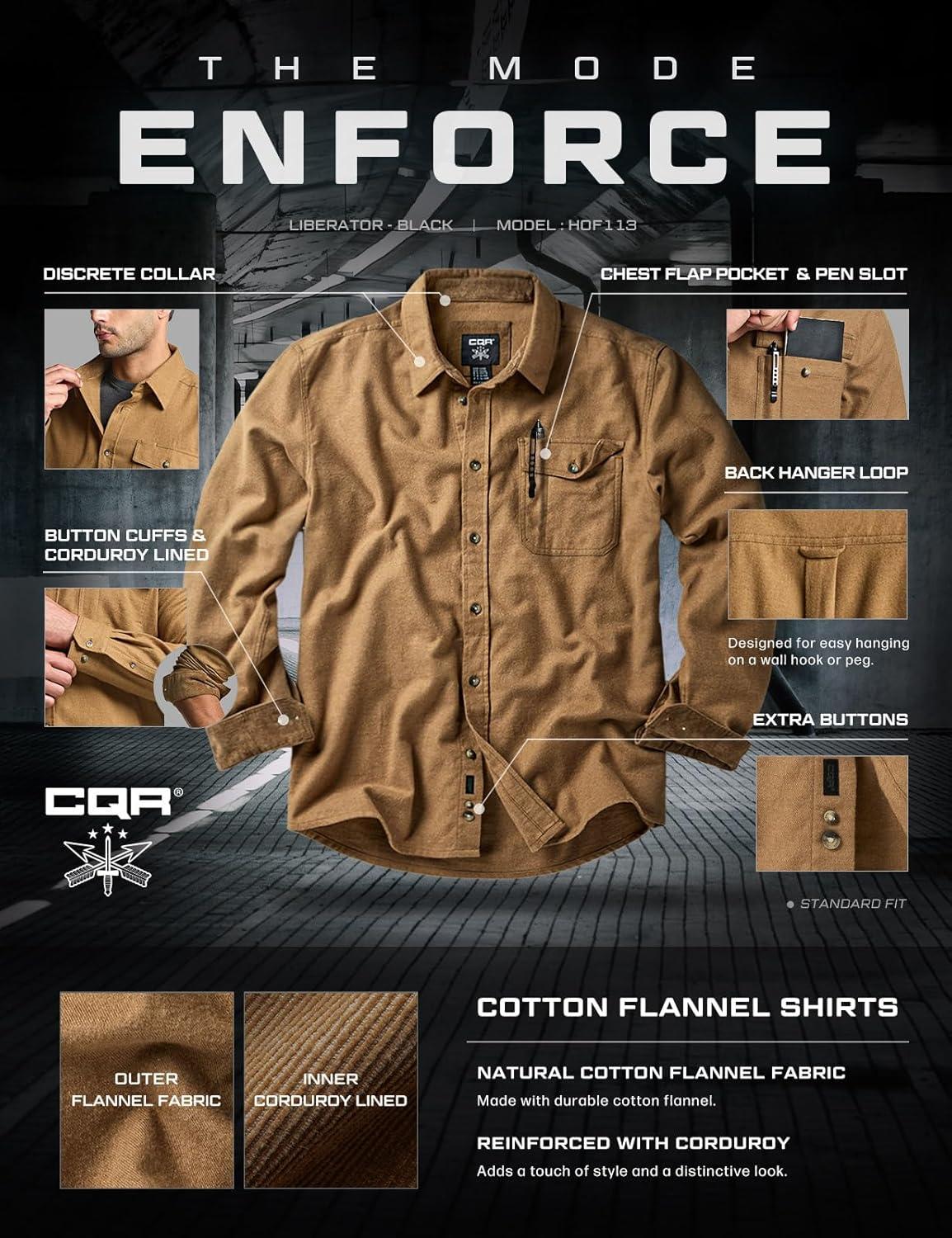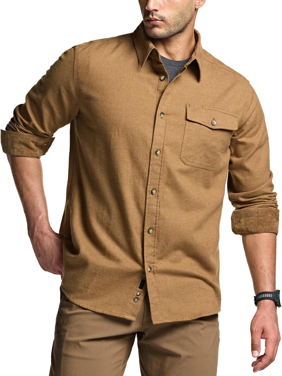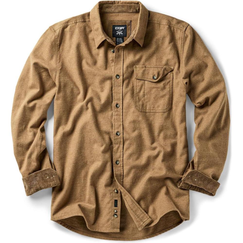 imageCQR Mens 100 All Cotton Button Down Flannel Shirts Long Sleeve Brushed Warm Soft Casual Outdoor Plaid ShirtCorduroy Wheat Brown