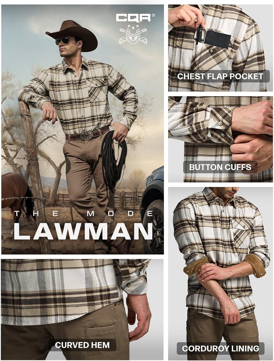 CQR Men’s 100% All Cotton Button Down Flannel Shirts, Long Sleeve Brushed Warm Soft Casual Outdoor Plaid Shirt(Plaid Affogato)