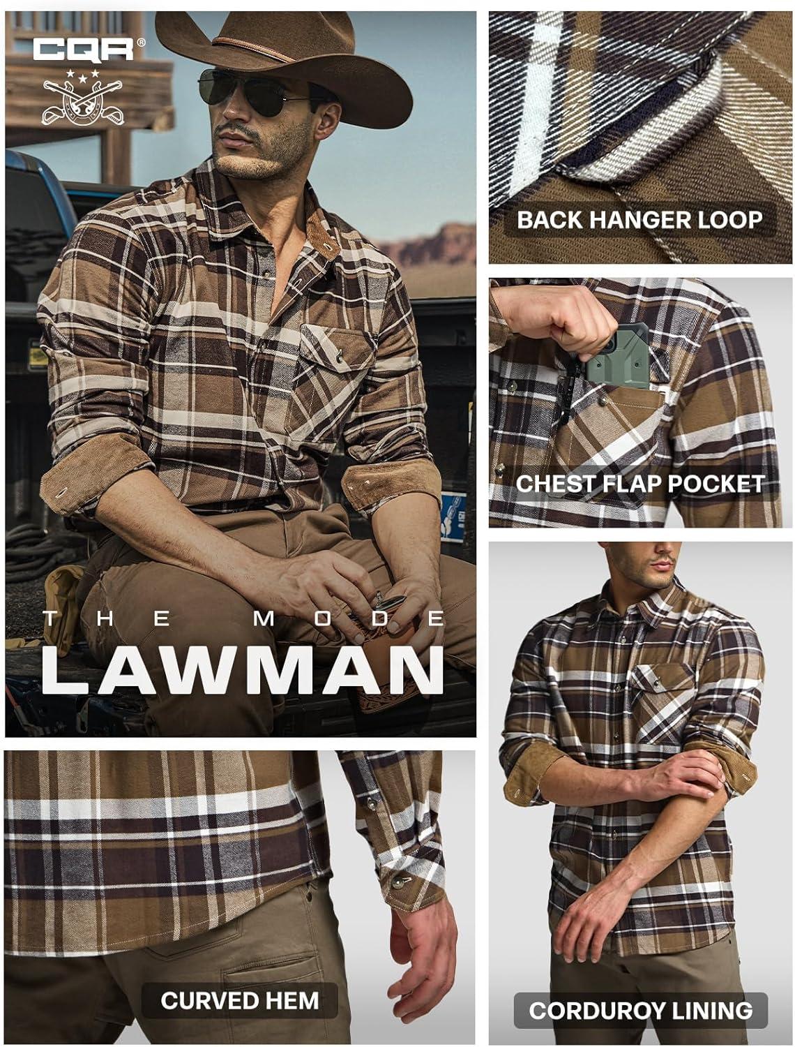 CQR Men’s 100% All Cotton Button Down Flannel Shirts, Long Sleeve Brushed Warm Soft Casual Outdoor Plaid Shirt(Plaid Affogato)
