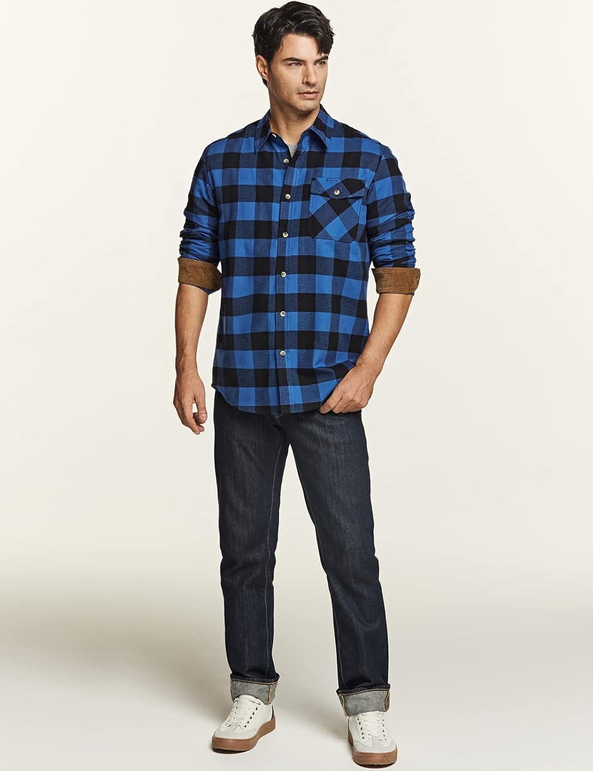 imageCQR Mens 100 All Cotton Button Down Flannel Shirts Long Sleeve Brushed Warm Soft Casual Outdoor Plaid ShirtPlaid Classic Blue