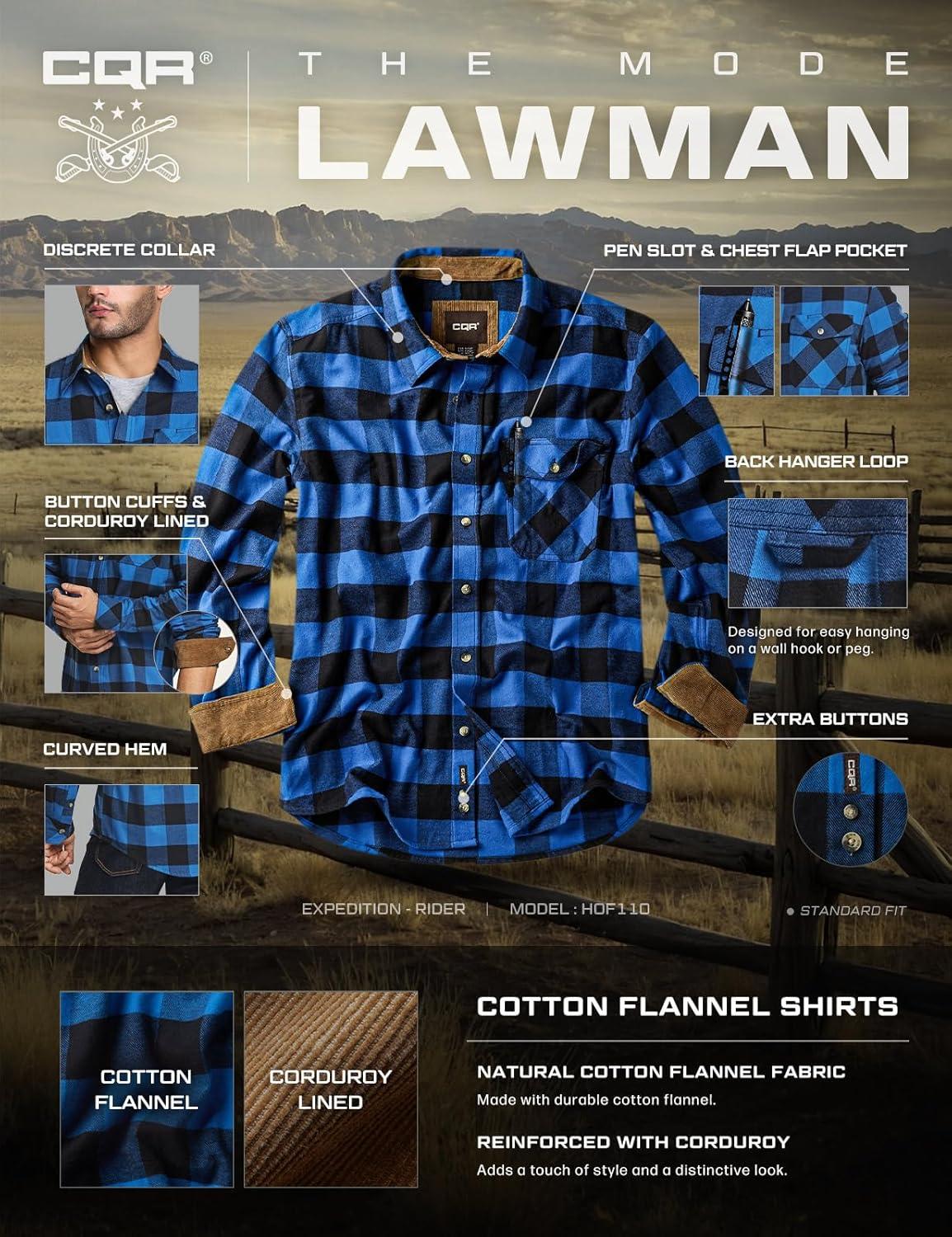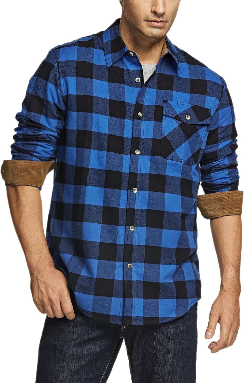 CQR Men's 100% All Cotton Button Down Flannel Shirts, Long Sleeve Brushed Warm Soft Casual Outdoor Plaid Shirt(Plaid Classic Blue)