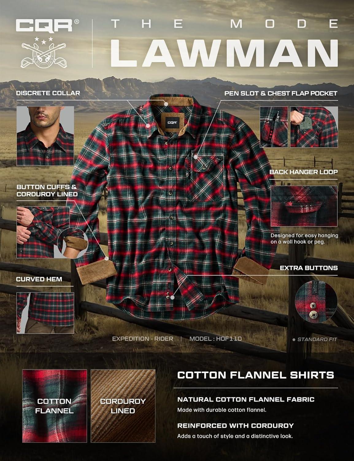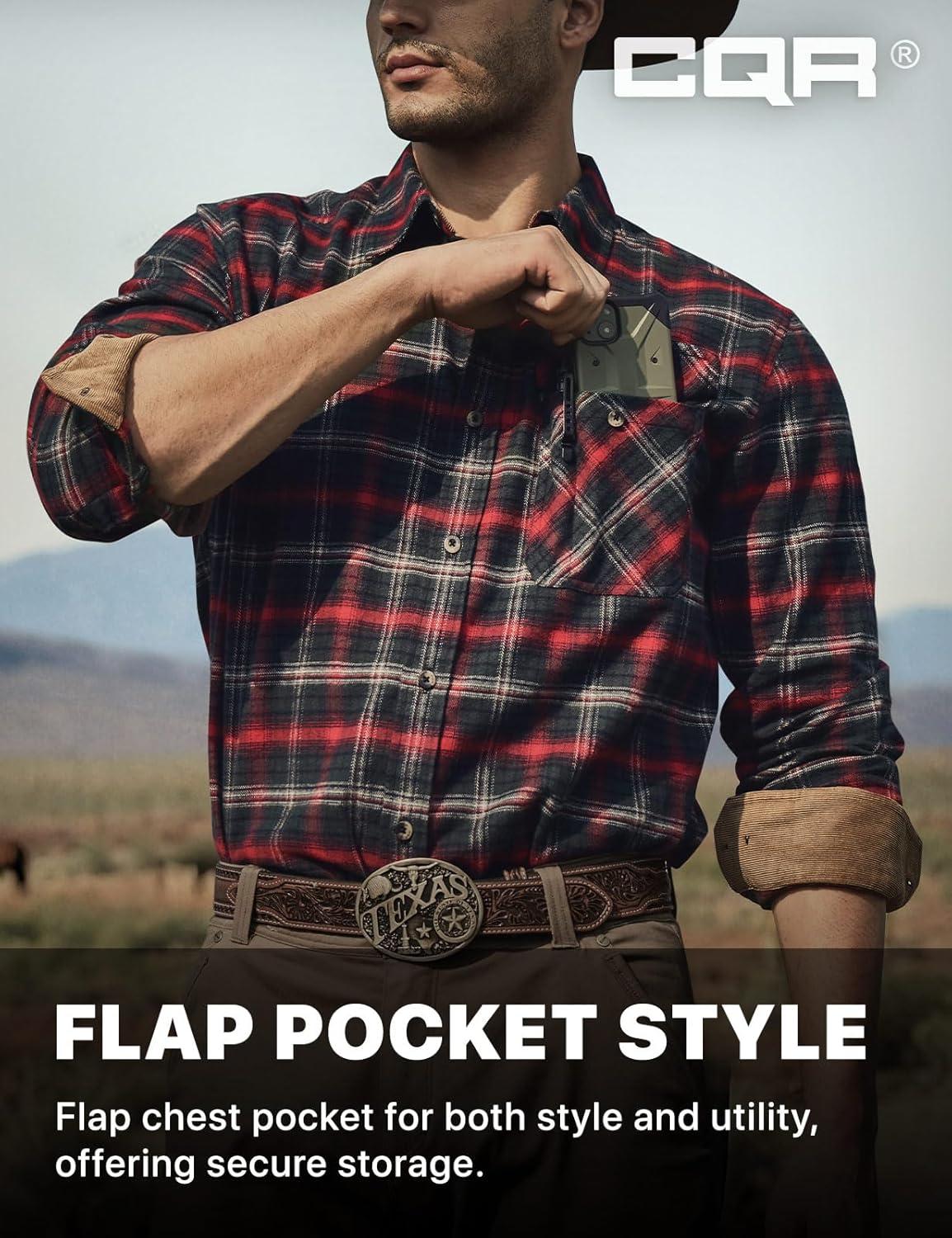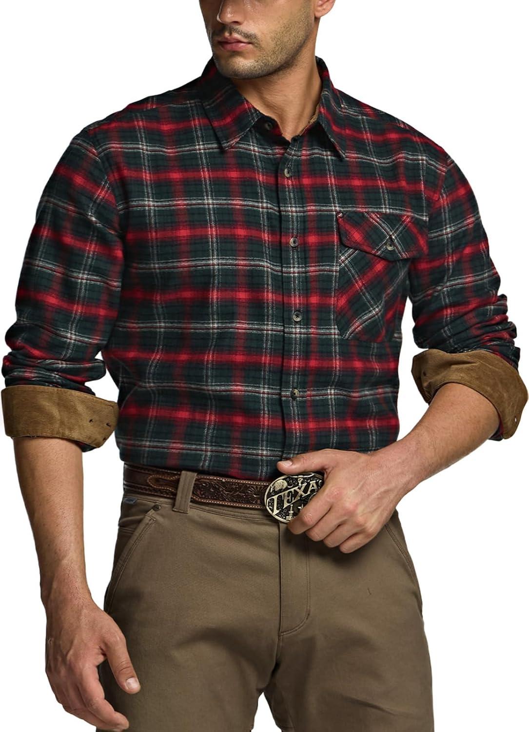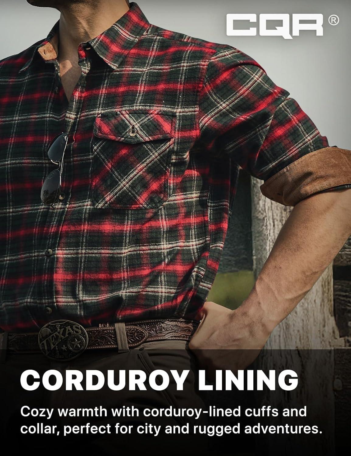 CQR Men’s 100% All Cotton Button Down Flannel Shirts, Long Sleeve Brushed Warm Soft Casual Outdoor Plaid Shirt(Plaid Woodlot)