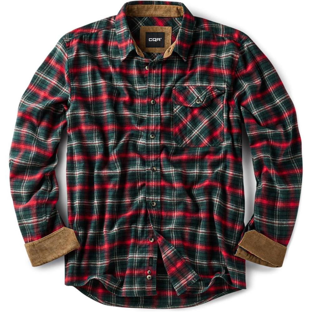imageCQR Mens 100 All Cotton Button Down Flannel Shirts Long Sleeve Brushed Warm Soft Casual Outdoor Plaid ShirtPlaid Woodlot
