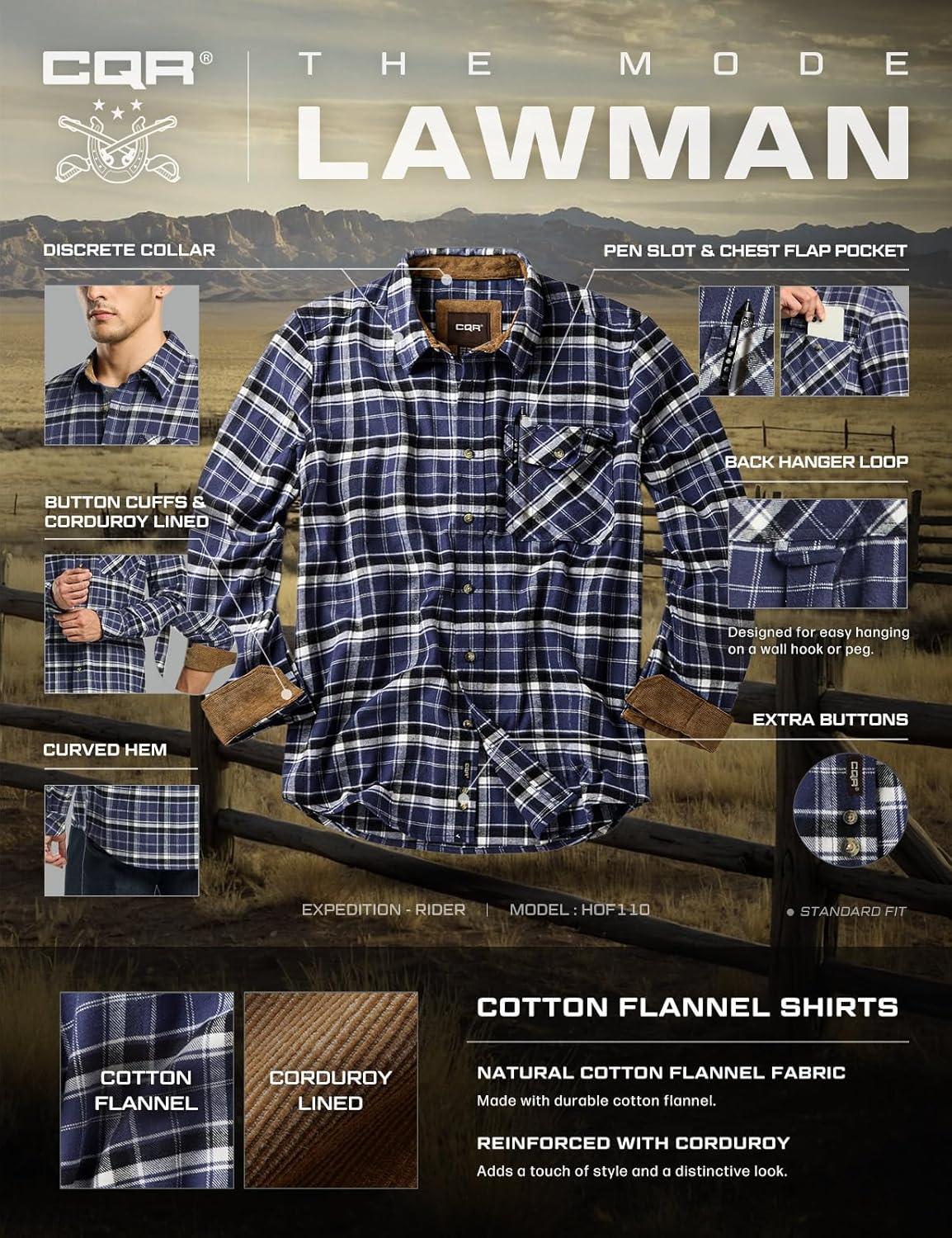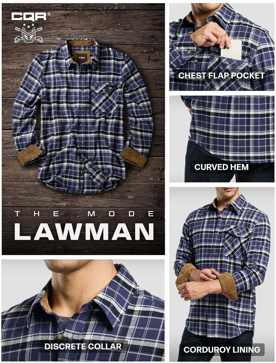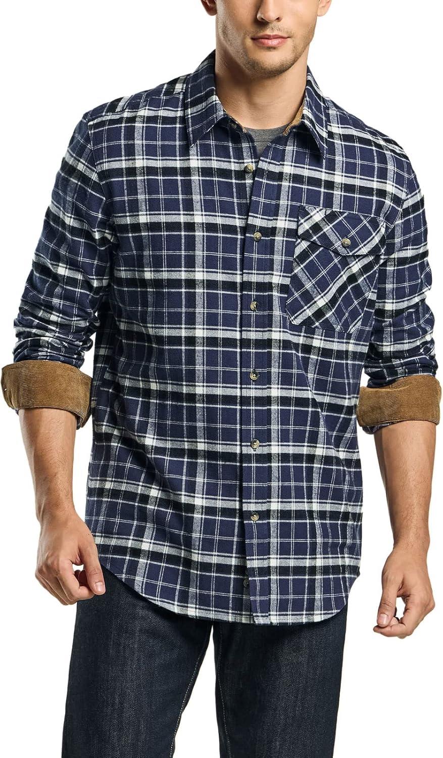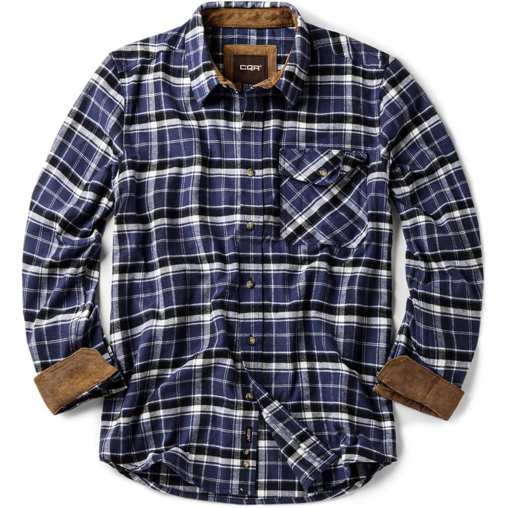 CQR Men’s 100% All Cotton Button Down Flannel Shirts, Long Sleeve Brushed Warm Soft Casual Outdoor Plaid Shirt(Plaid Classic Blue)