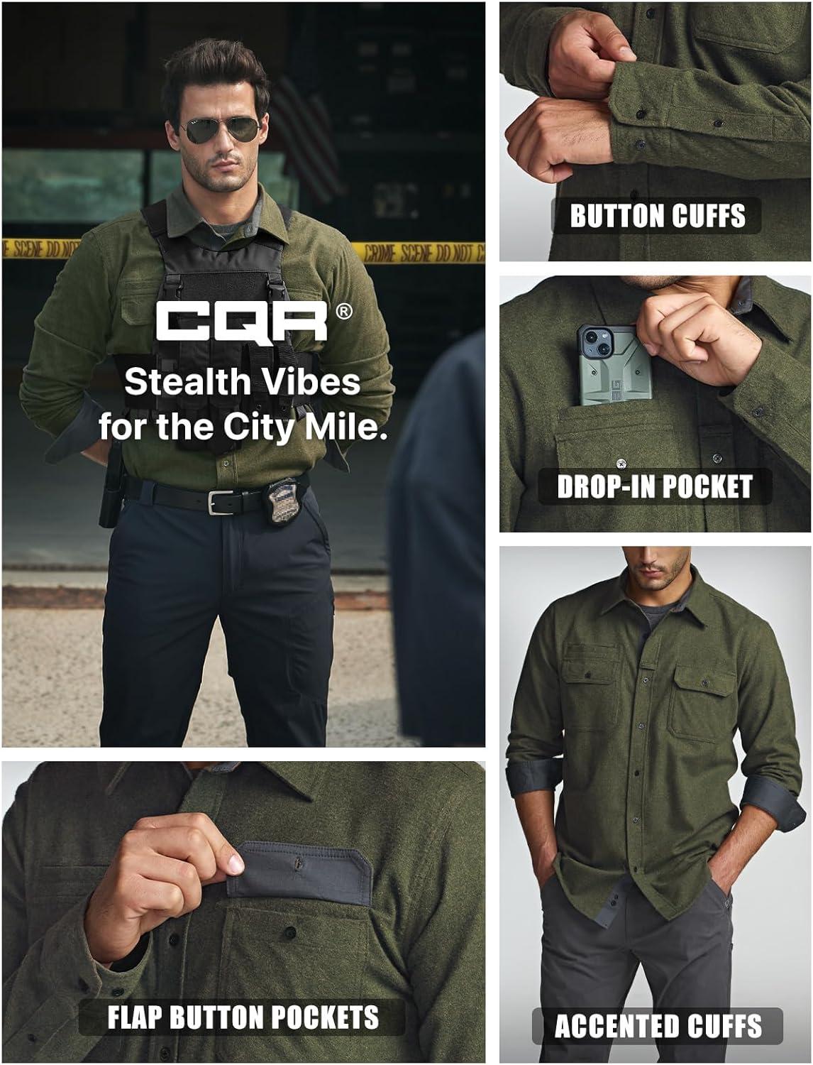 imageCQR Mens 100 All Cotton Button Down Flannel Shirts Long Sleeve Brushed Warm Soft Casual Outdoor Plaid ShirtStealth Holiday Mood