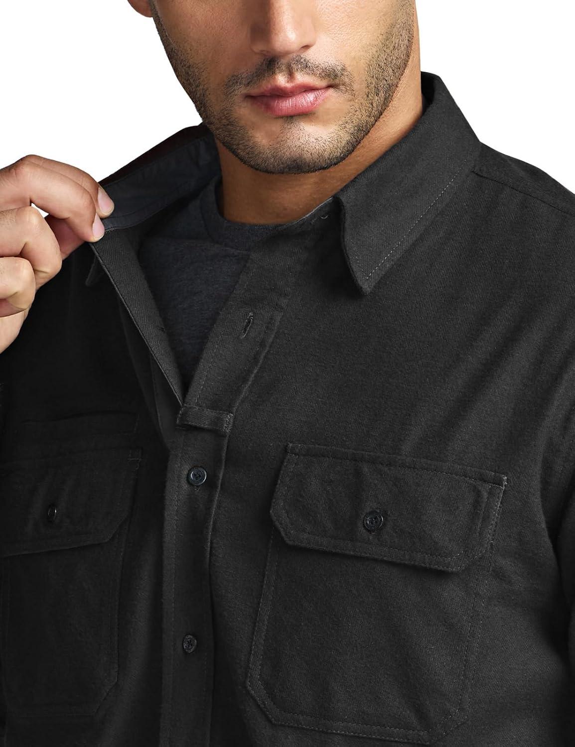CQR Men’s 100% All Cotton Button Down Flannel Shirts, Long Sleeve Brushed Warm Soft Casual Outdoor Plaid Shirt(Stealth Solid Black)