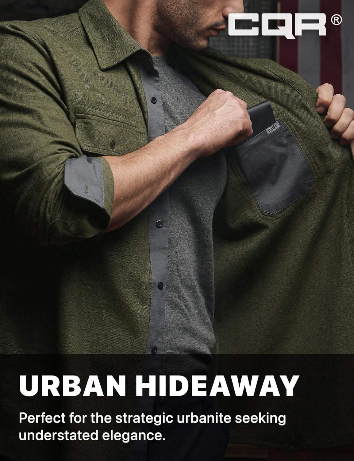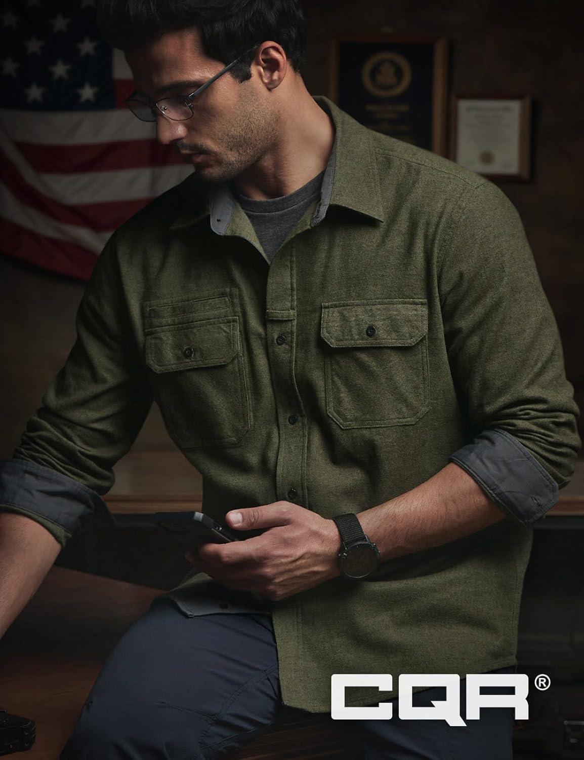 CQR Men's 100% All Cotton Button Down Flannel Shirts, Long Sleeve Brushed Warm Soft Casual Outdoor Plaid Shirt(Stealth Solid Hunter Green)