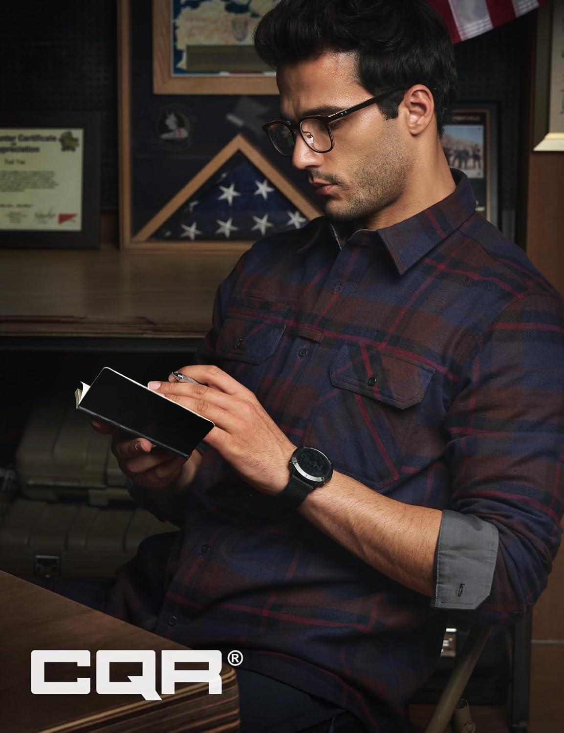 CQR Men’s 100% All Cotton Button Down Flannel Shirts, Long Sleeve Brushed Warm Soft Casual Outdoor Plaid Shirt(Stealth Woods Night)