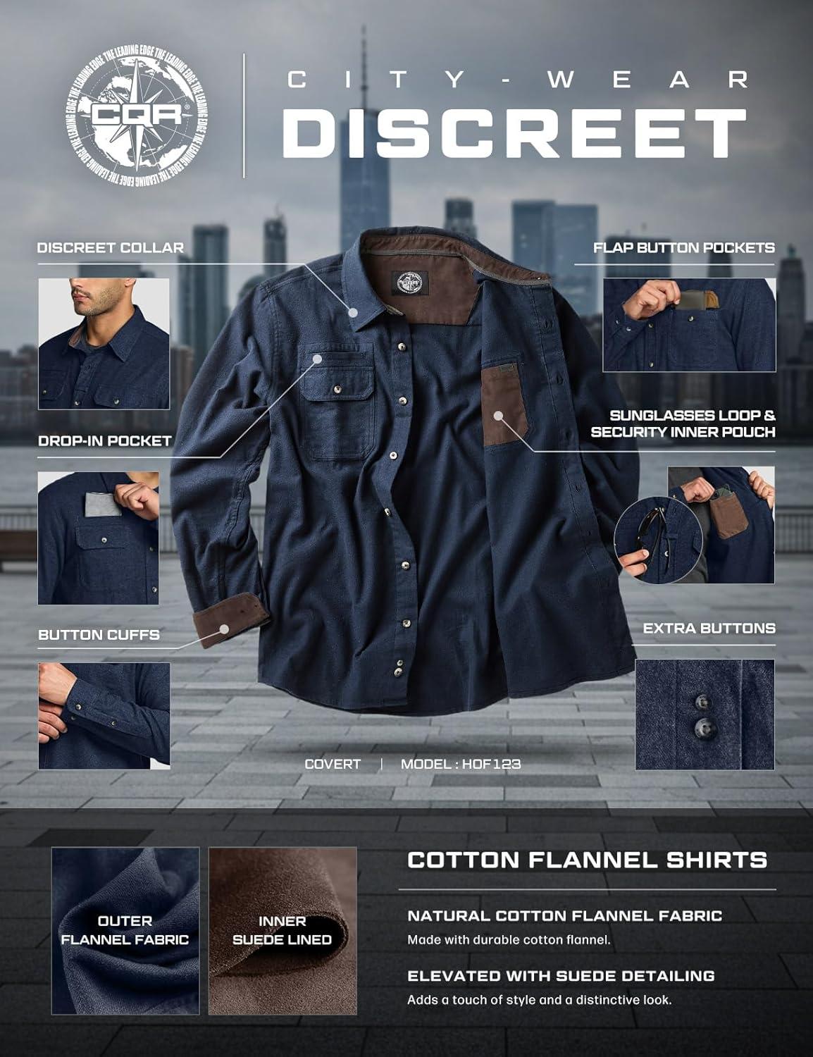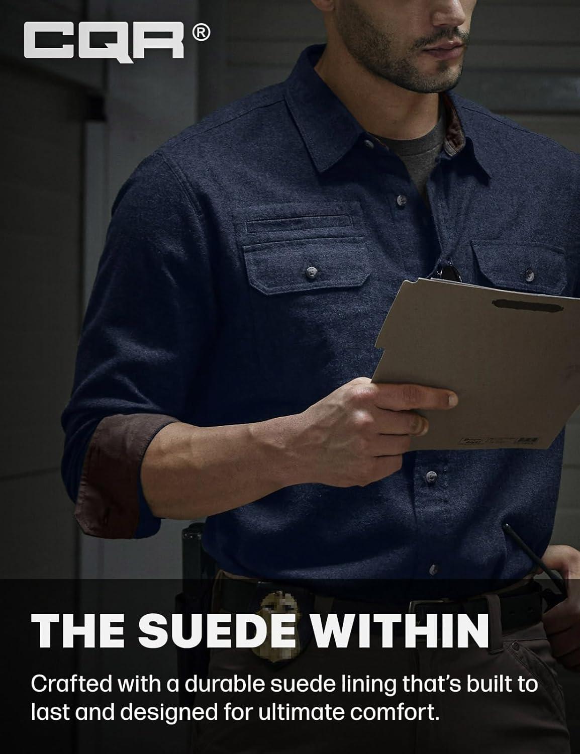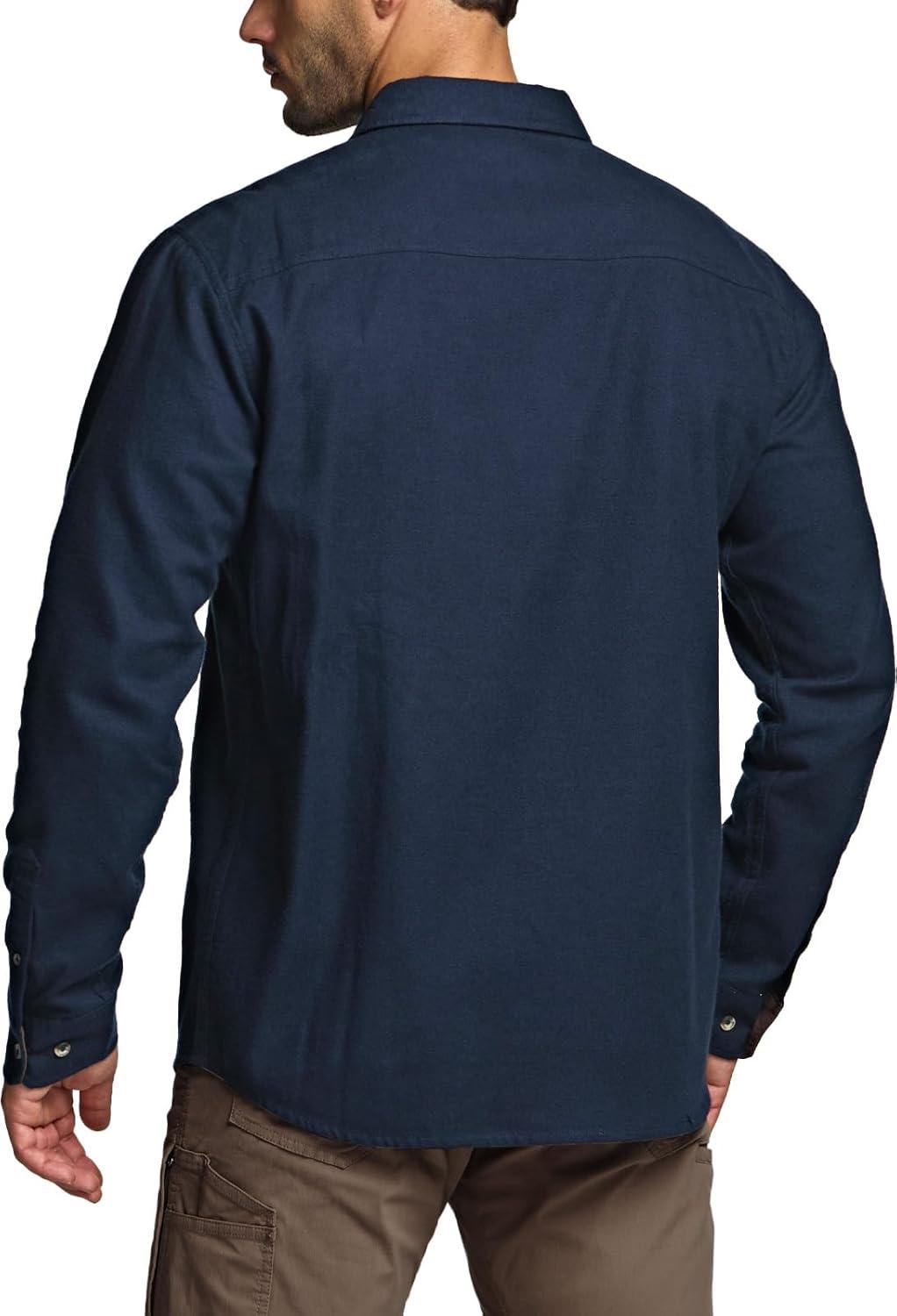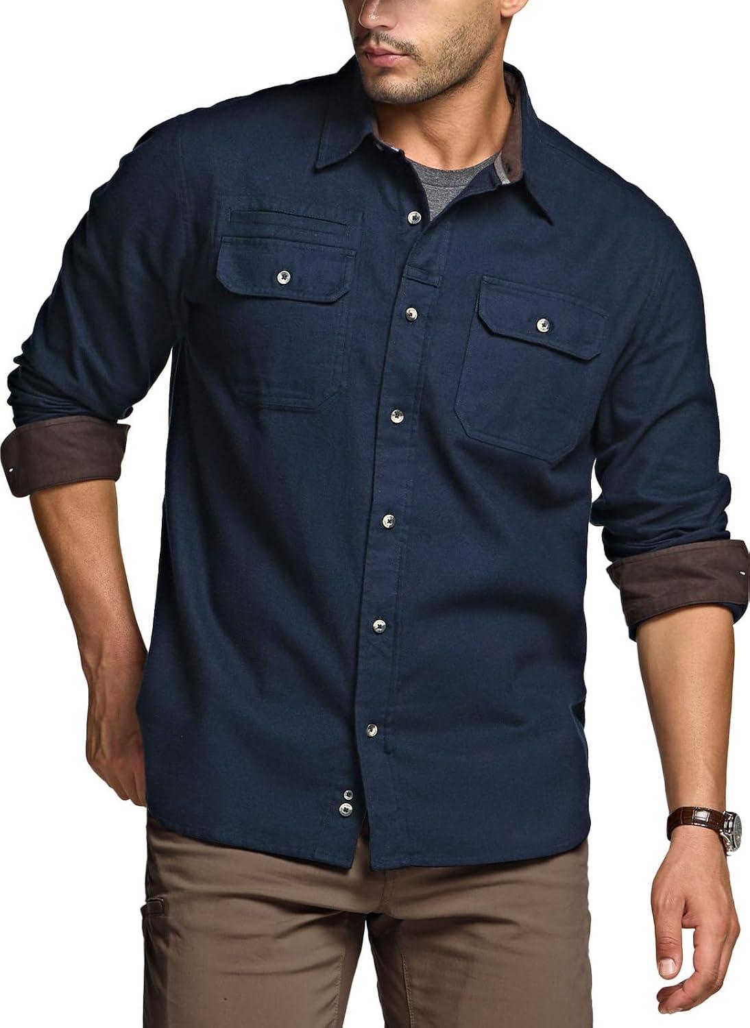 imageCQR Mens 100 All Cotton Button Down Flannel Shirts Long Sleeve Brushed Warm Soft Casual Outdoor Plaid ShirtSuede Navy