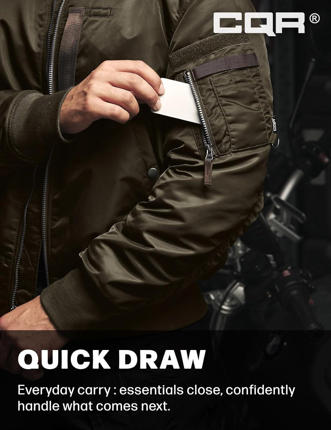 imageCQR Mens Casual Bomber Jacket Outdoor FallWinter ZipUp Windbreaker Water Resistant Padded MA1 Flight Jacket with PocketWatcher Carbon Grey