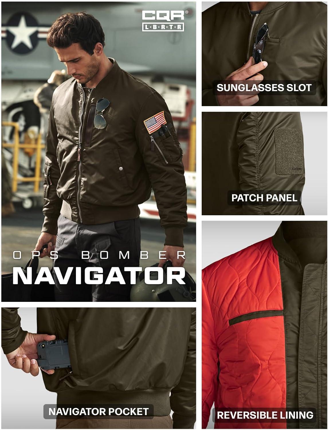 CQR Men’s Casual Bomber Jacket, Outdoor Fall/Winter Zip-Up Windbreaker, Water Resistant Padded MA-1 Flight Jacket with Pocket(Navigator Dark Brown)