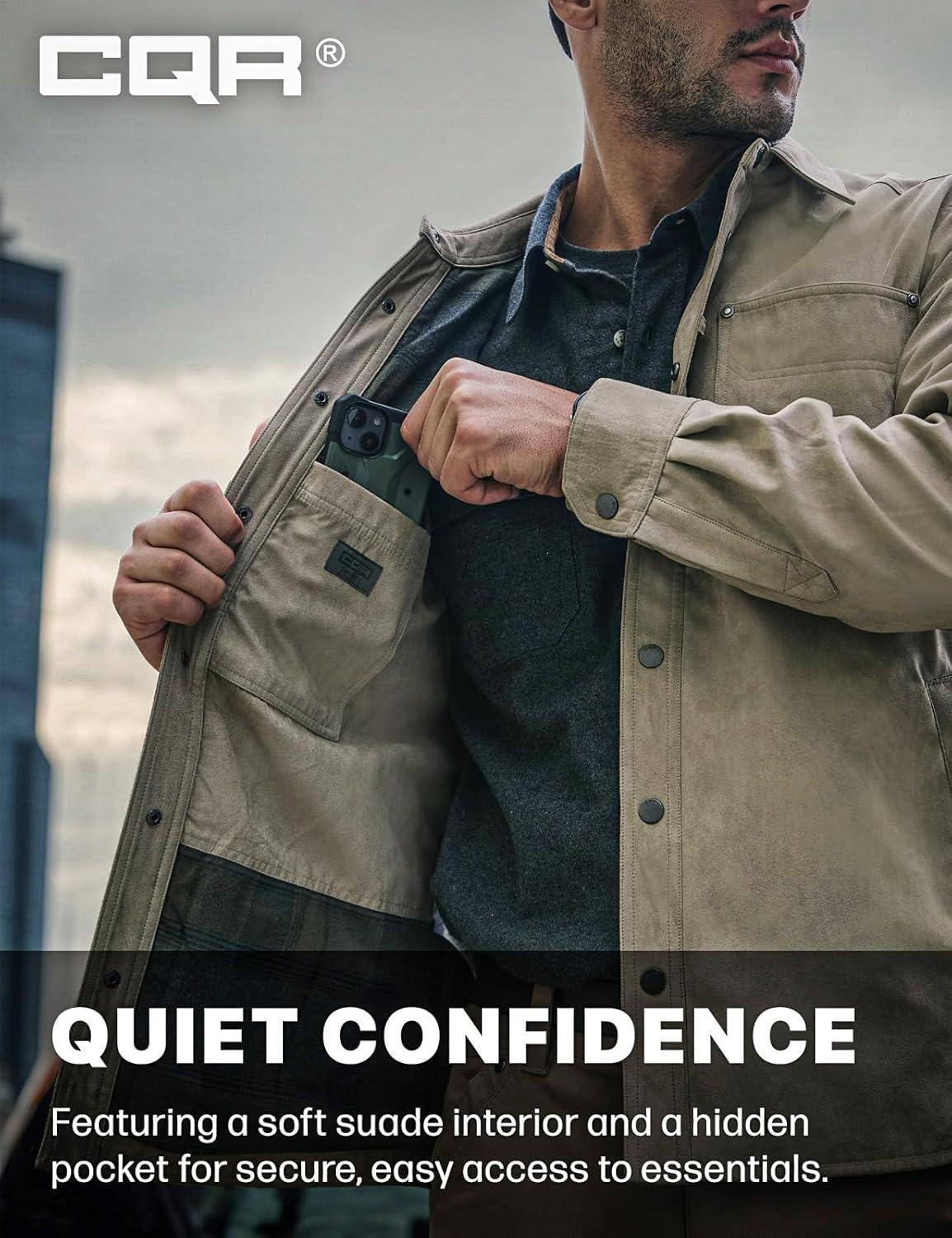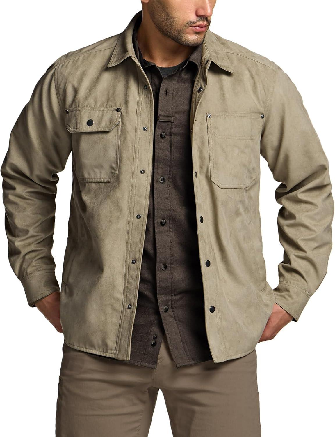 CQR Men’s Flannel Lined Shirt Jackets, Long Sleeved Rugged Plaid Cotton Brushed Suede Shirt Jacket(Stealth Dune Khaki & Amazon Grey)