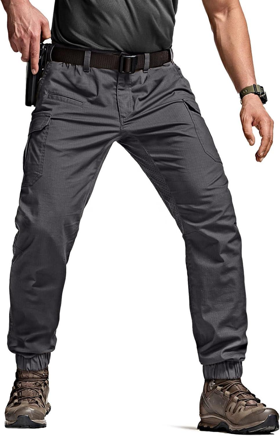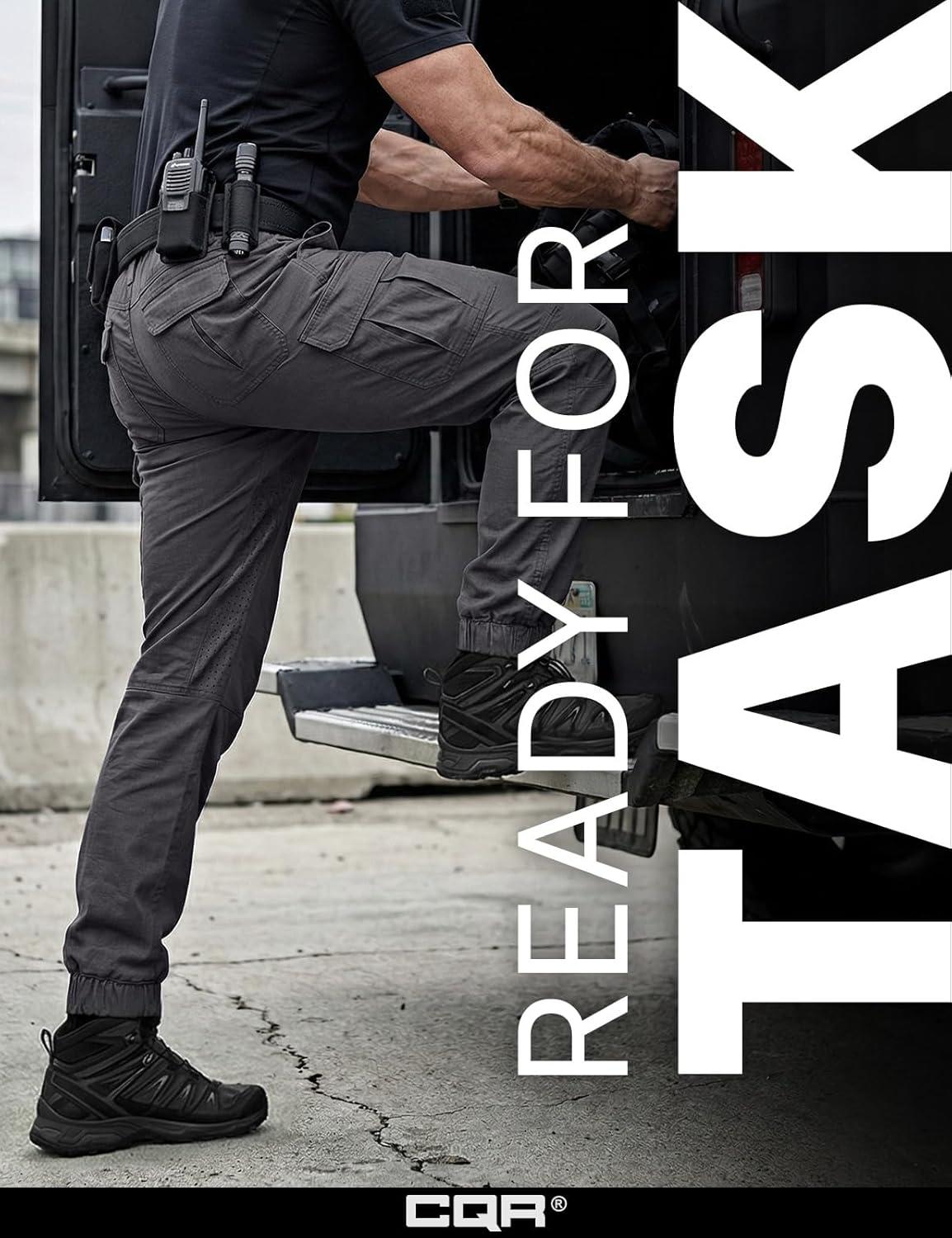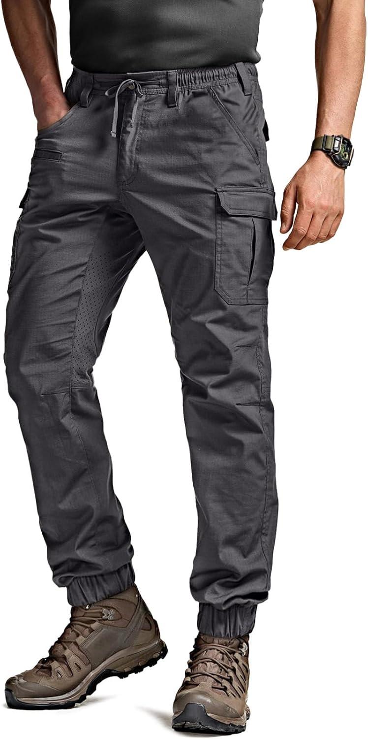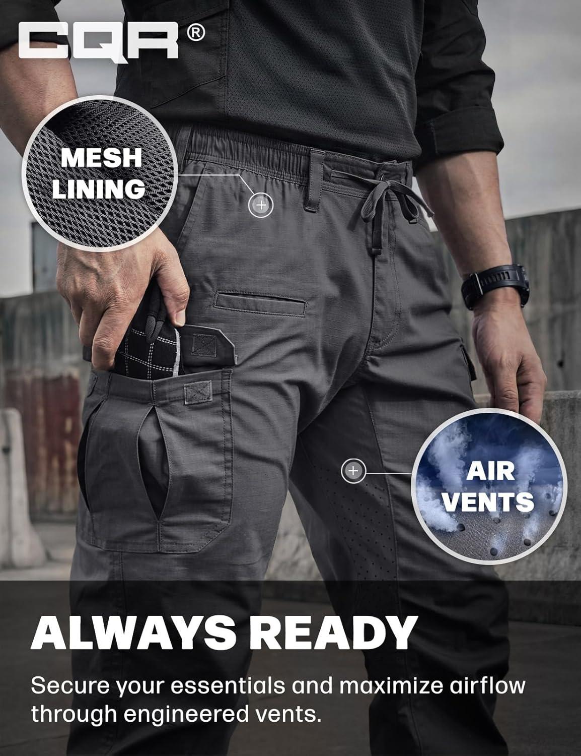imageCQR Mens Flex Lightweight Joggers Elastic Waist Drawstring Casual Pants Tapered Fit Water Resistant Outdoor Cargo PantsSquad Cougar