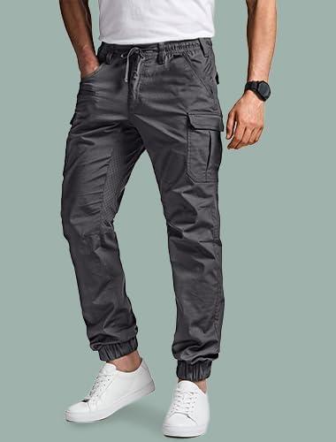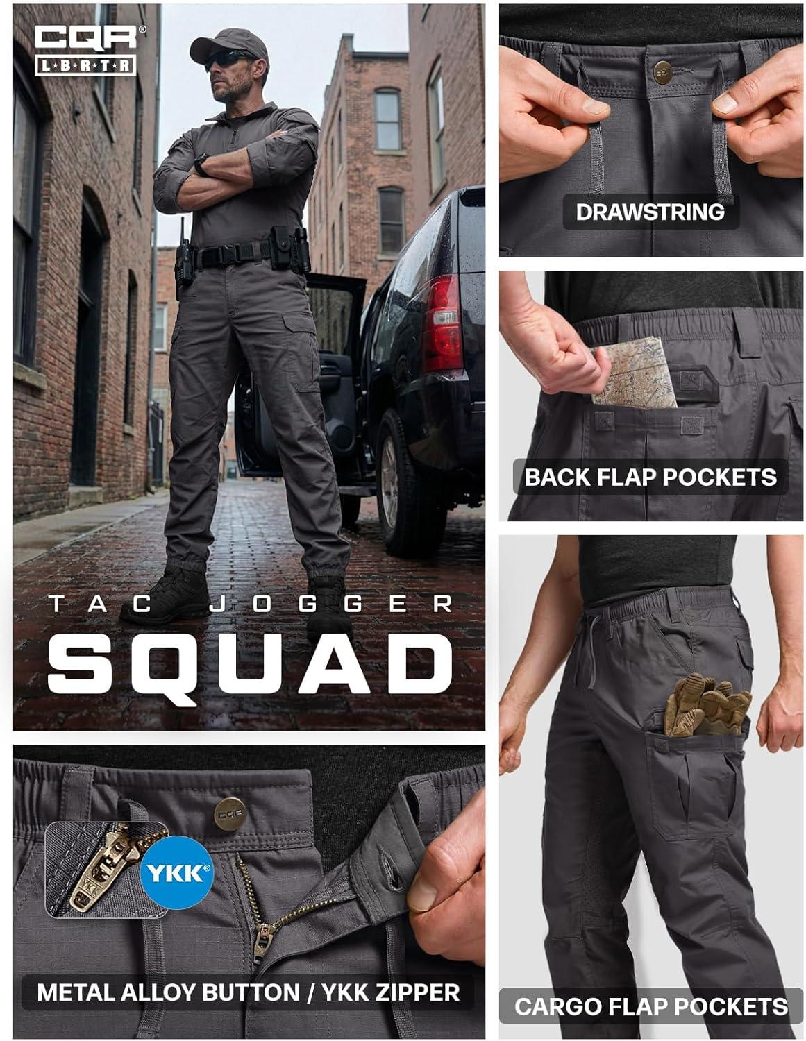 imageCQR Mens Flex Lightweight Joggers Elastic Waist Drawstring Casual Pants Tapered Fit Water Resistant Outdoor Cargo PantsSquad Charcoal