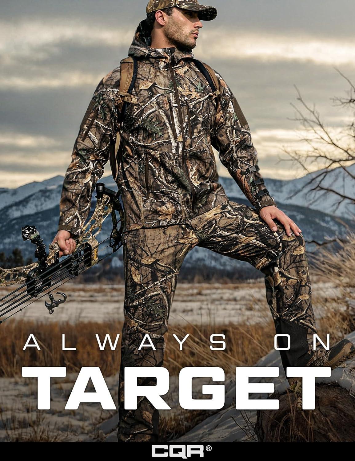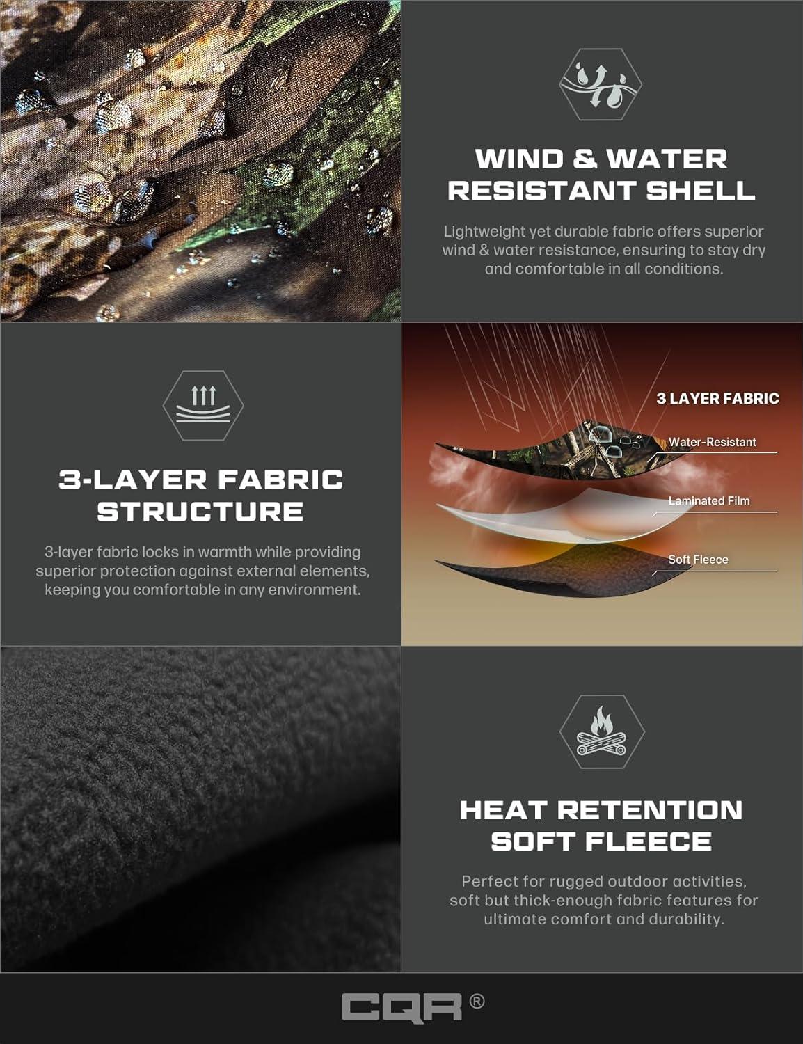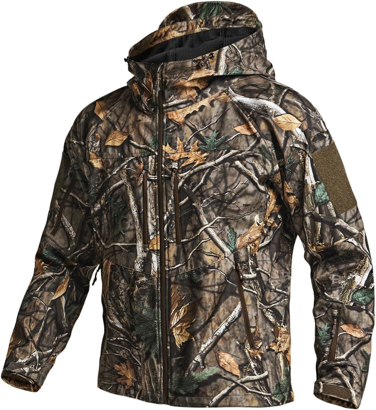 CQR Men's Hooded Tactical Softshell Jacket, Water Resistant Fleece Lined Hoodie, Winter Outdoor Hunting Hiking Rain Wind(Operator Hunting Camo)