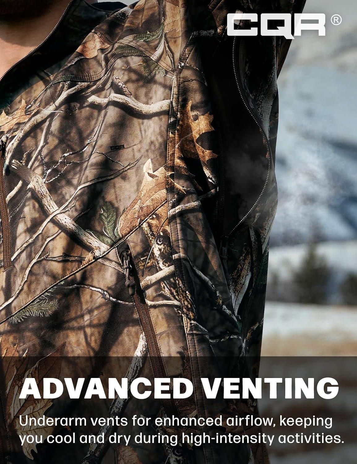 CQR Men’s Hooded Tactical Softshell Jacket, Water Resistant Fleece Lined Hoodie, Winter Outdoor Hunting Hiking Rain Wind(Operator Hunting Camo)