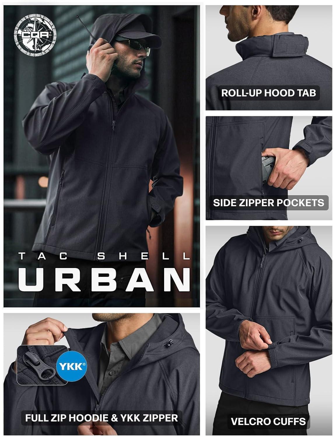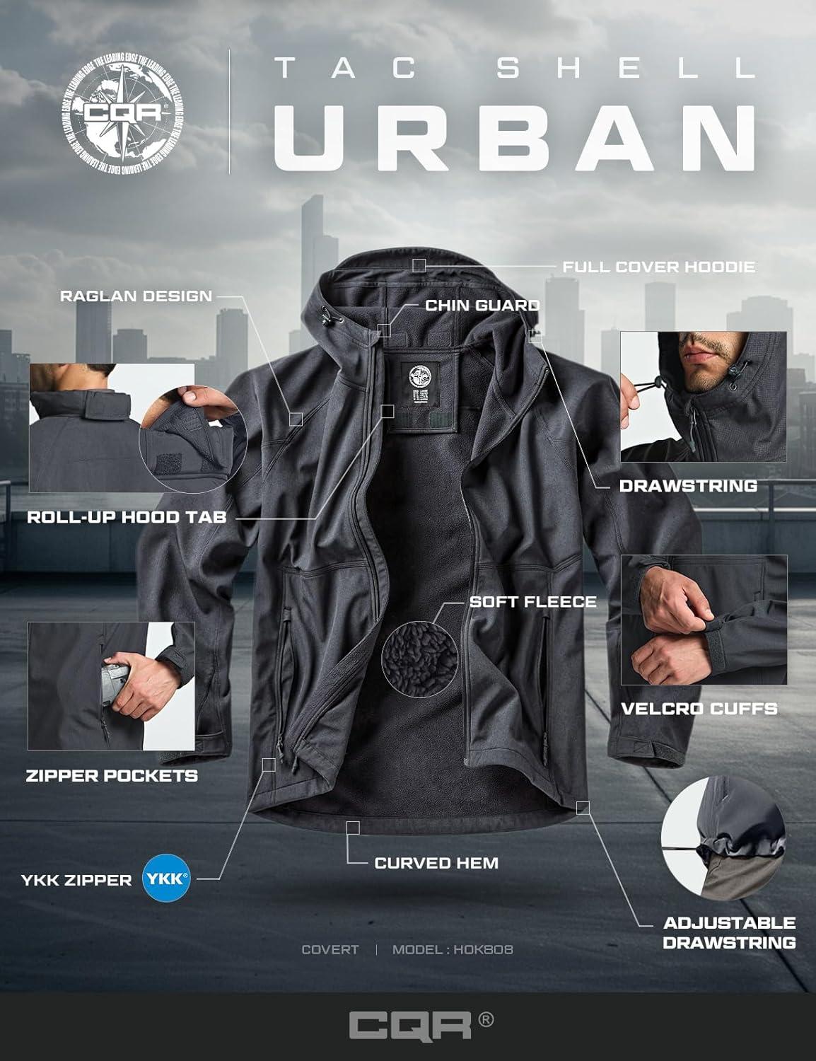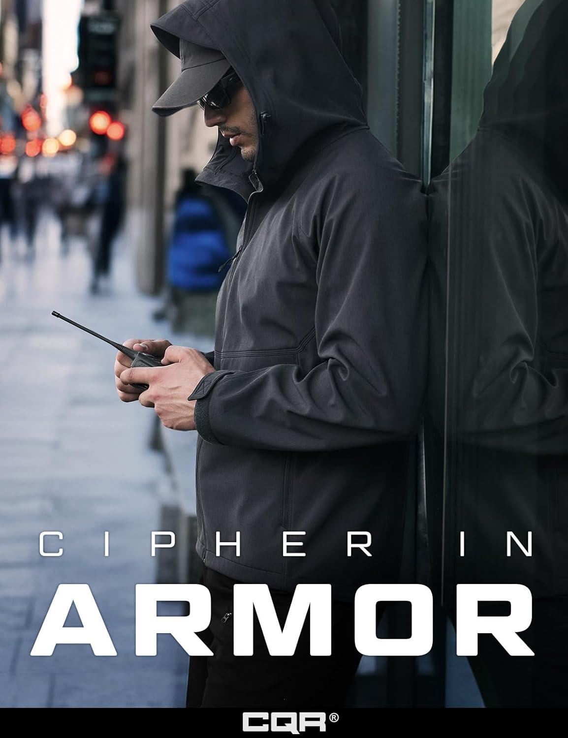 imageCQR Mens Hooded Tactical Softshell Jacket Water Resistant Fleece Lined Hoodie Winter Outdoor Hunting Hiking Rain WindStealth Black