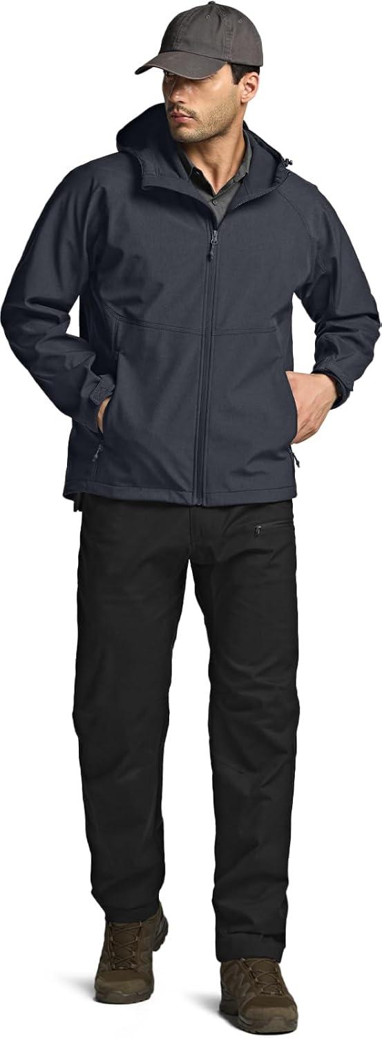 CQR Men’s Hooded Tactical Softshell Jacket, Water Resistant Fleece Lined Hoodie, Winter Outdoor Hunting Hiking Rain Wind(Stealth Heather Dark Grey)