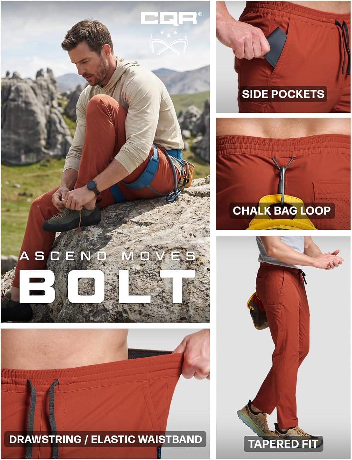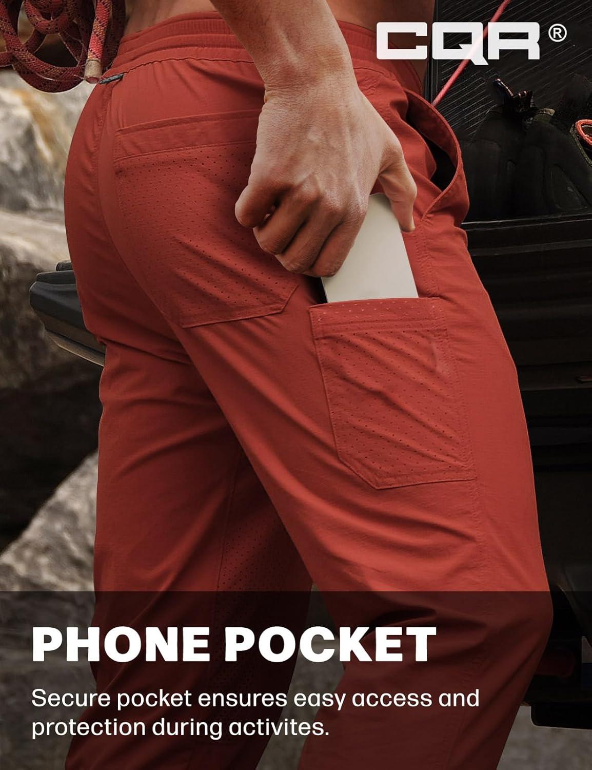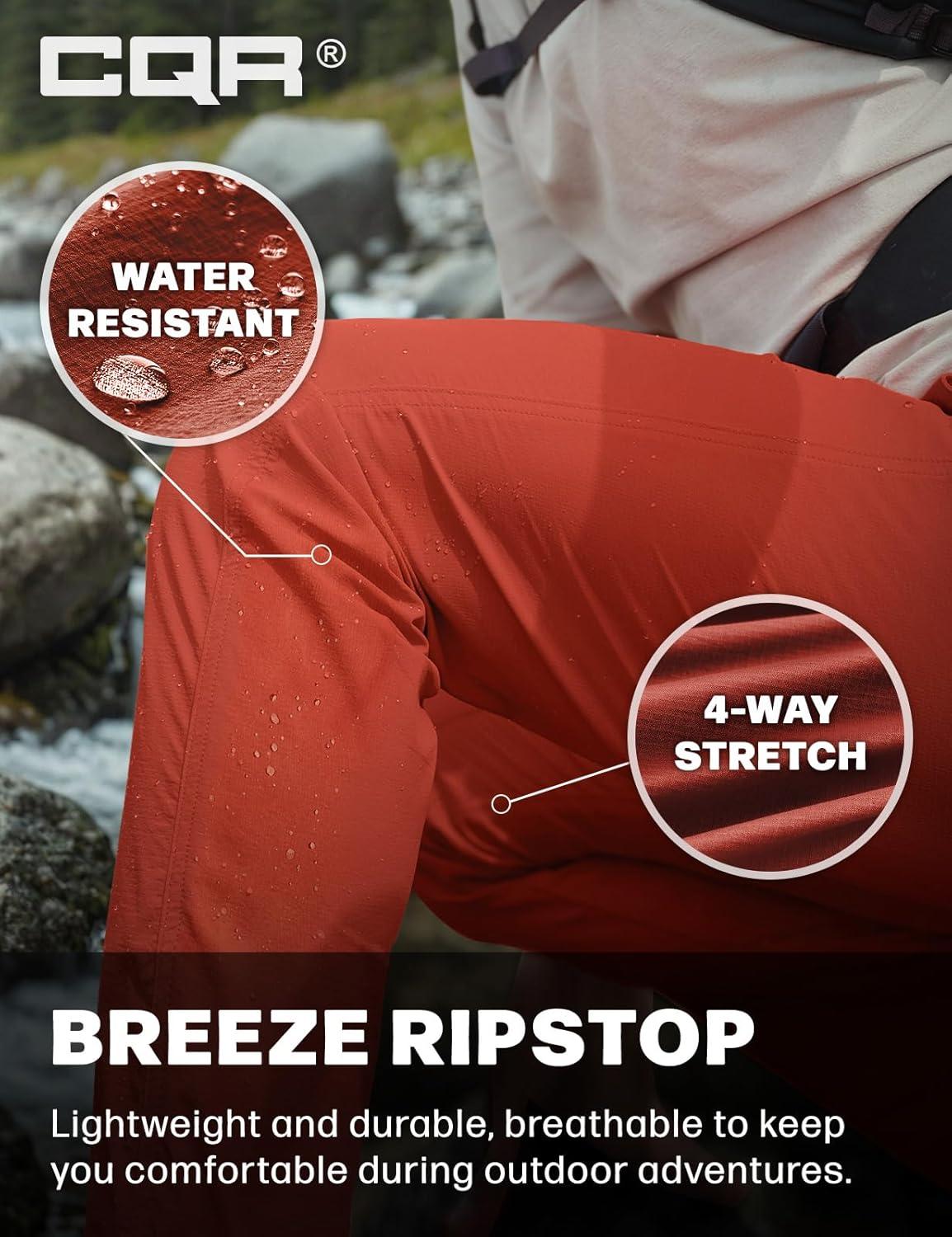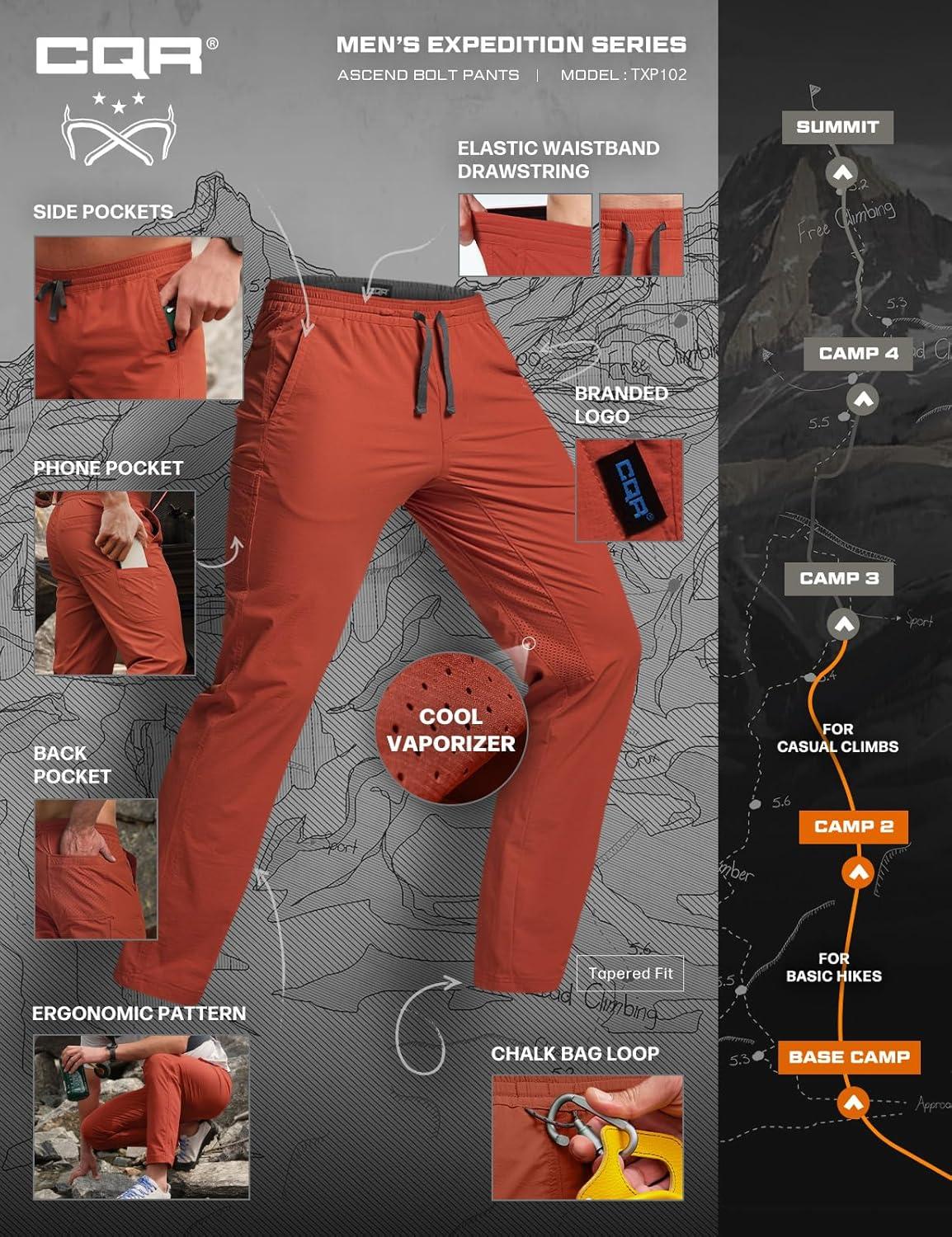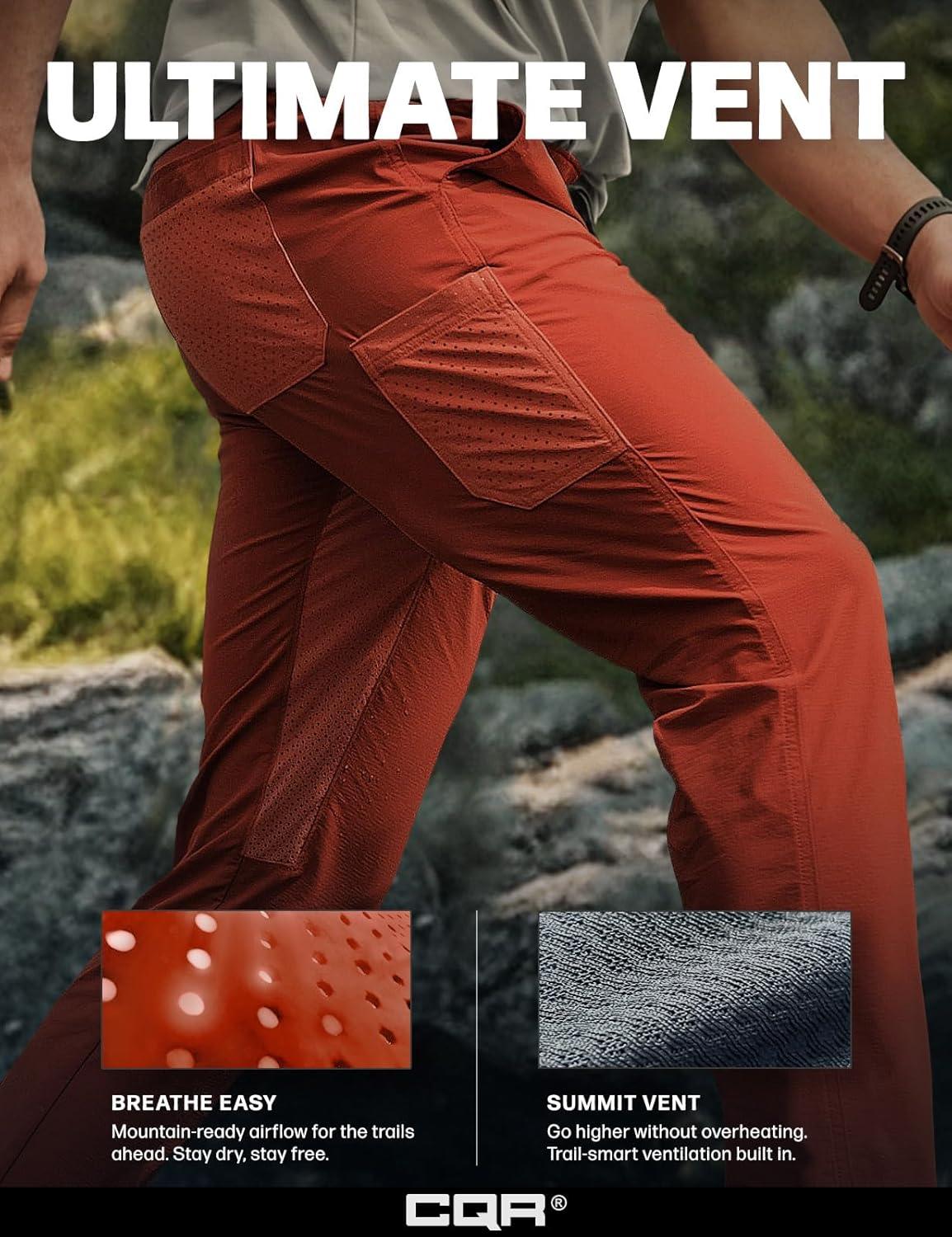 imageCQR Mens Lightweight Vent Hiking Pants WaterResistant amp Breathable Sports Outdoor Athletic Pants with Elastic WaistAscend Bolt Burnt Orange