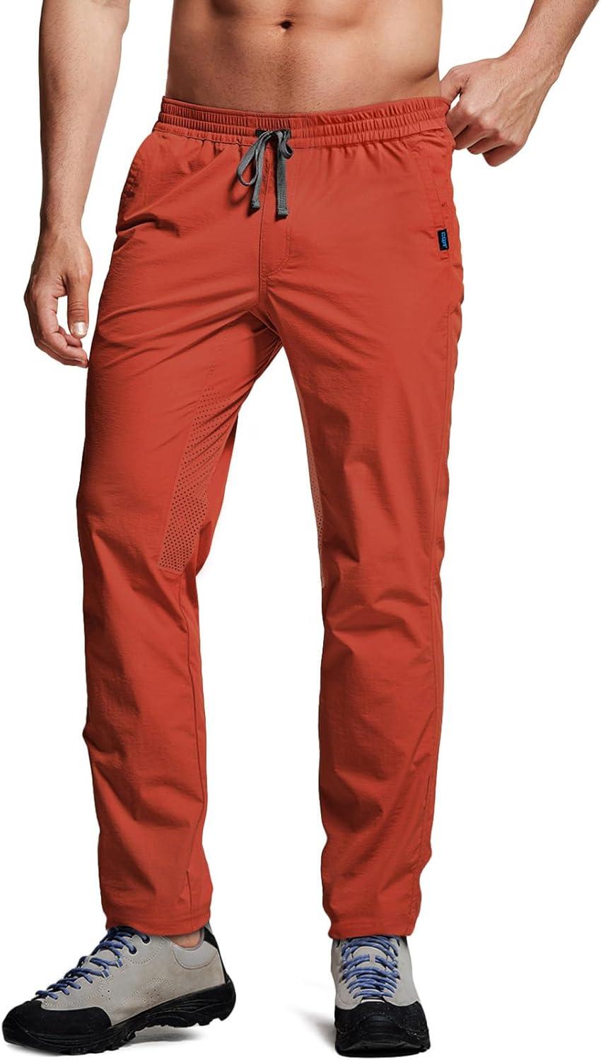 CQR Men's Lightweight Vent Hiking Pants, Water-Resistant & Breathable Sports Outdoor Athletic Pants with Elastic Waist(Ascend Bolt Burnt Orange)