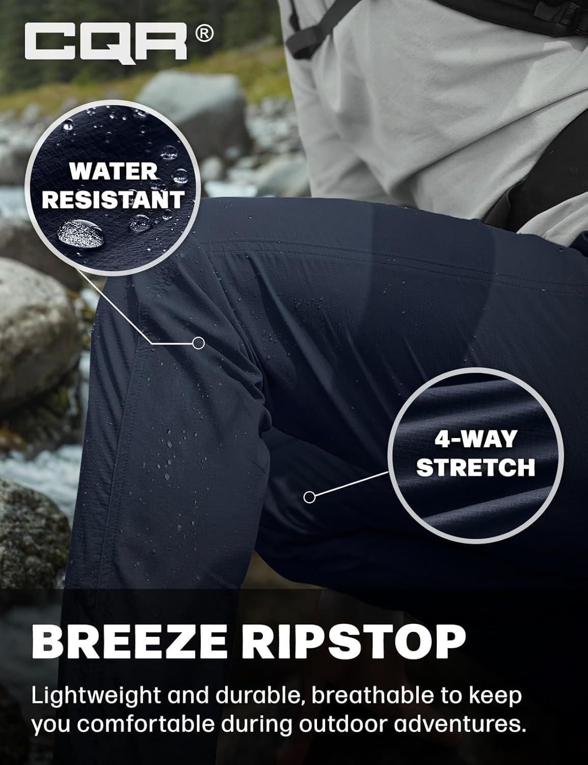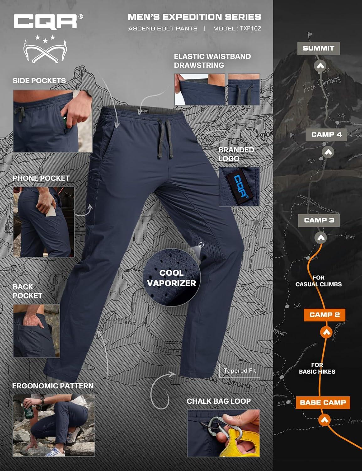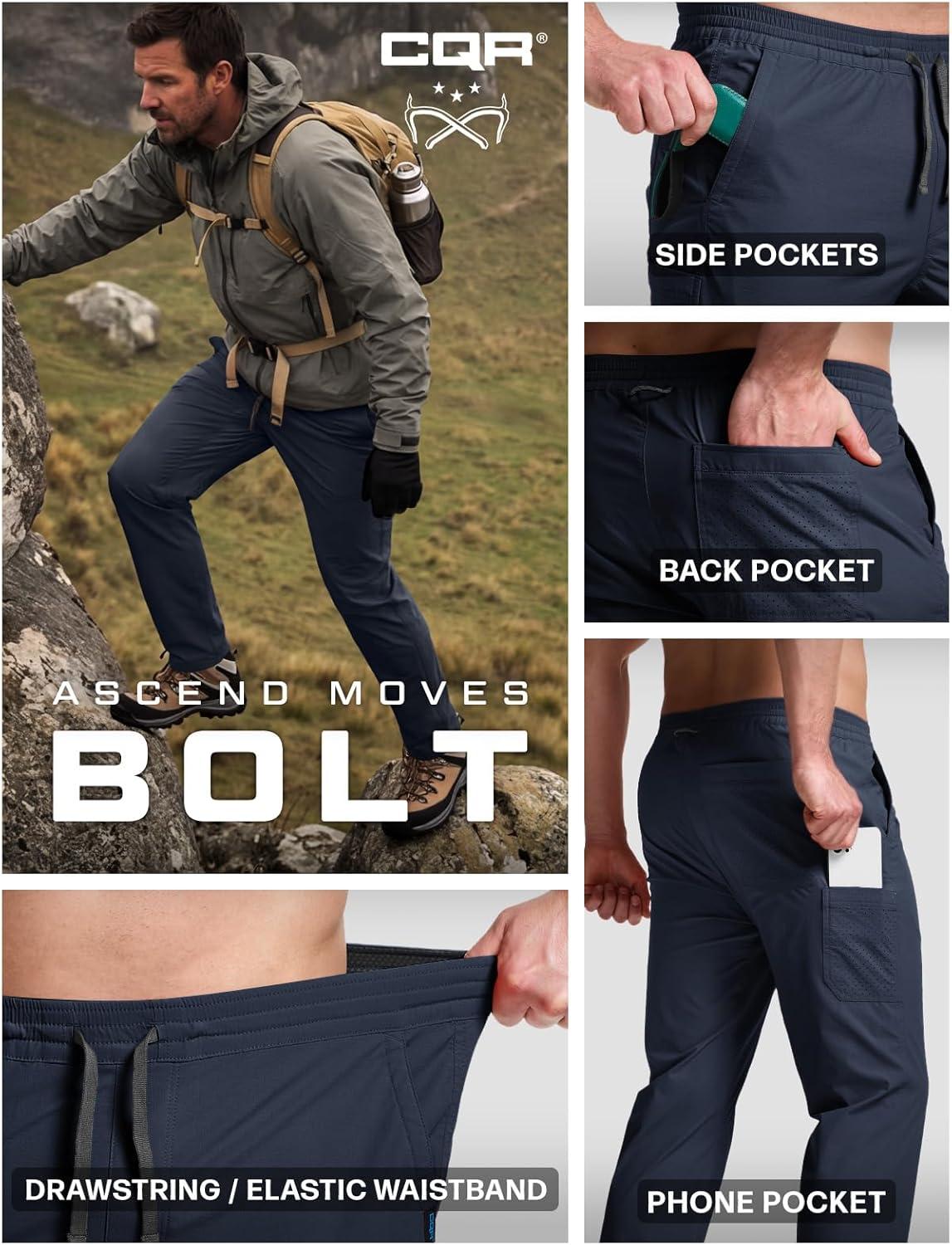 imageCQR Mens Lightweight Vent Hiking Pants WaterResistant amp Breathable Sports Outdoor Athletic Pants with Elastic WaistAscend Bolt Black