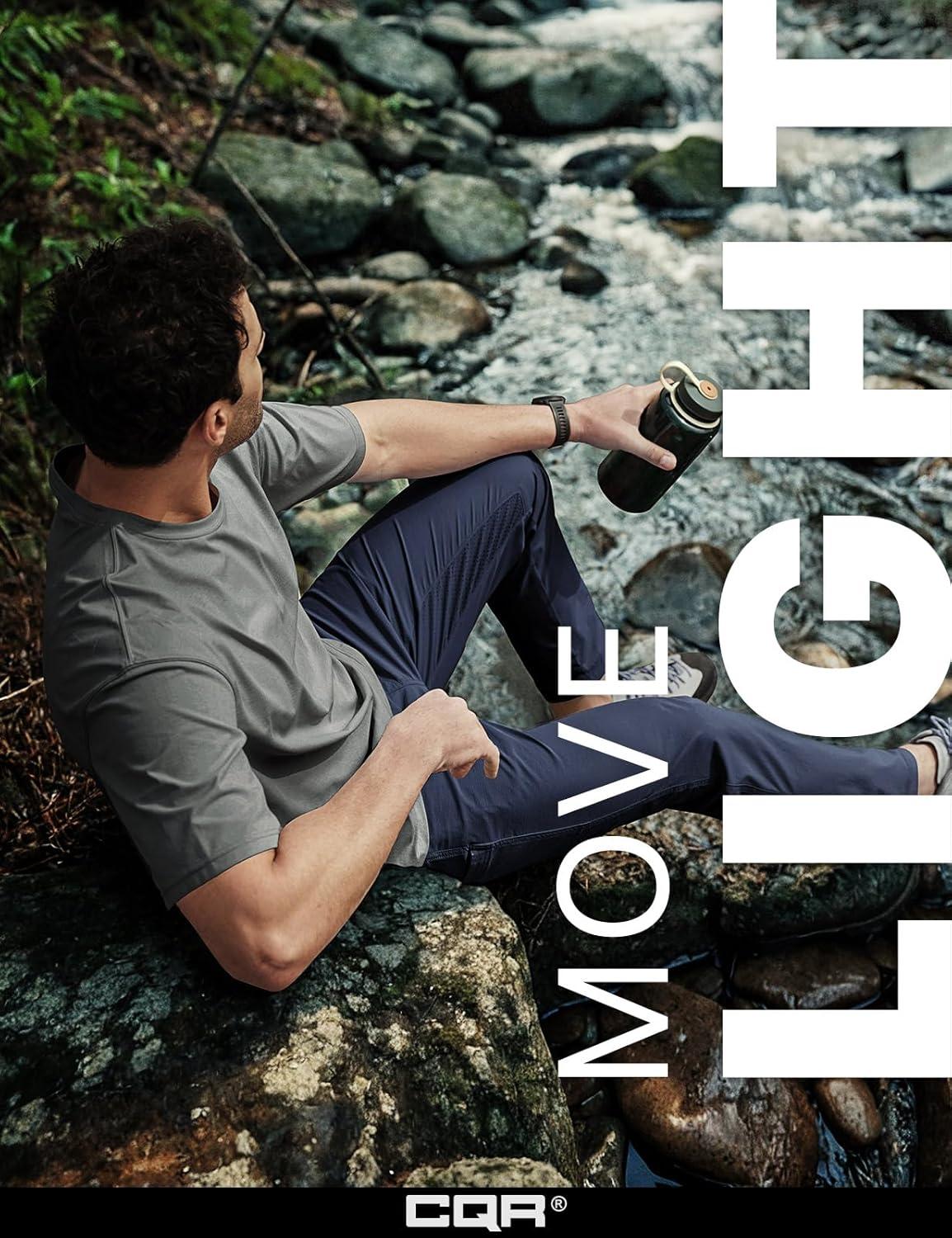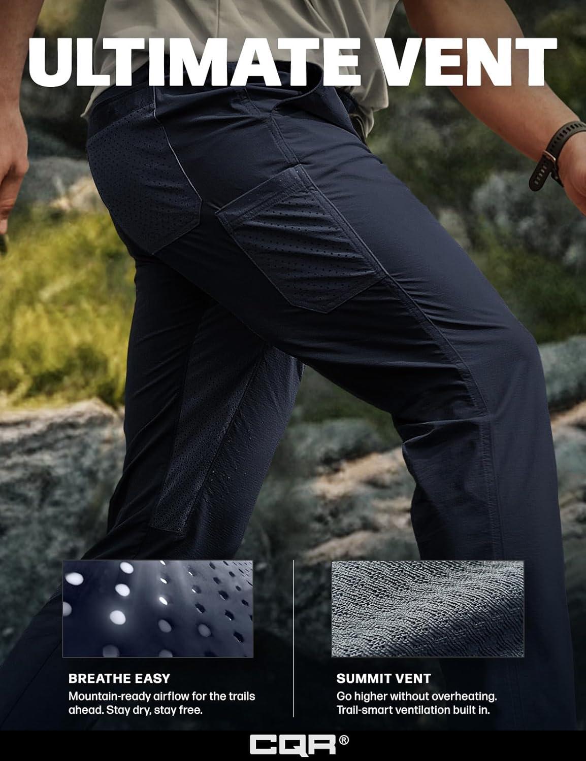 CQR Men’s Lightweight Vent Hiking Pants, Water-Resistant & Breathable Sports Outdoor Athletic Pants with Elastic Waist(Ascend Bolt Black)
