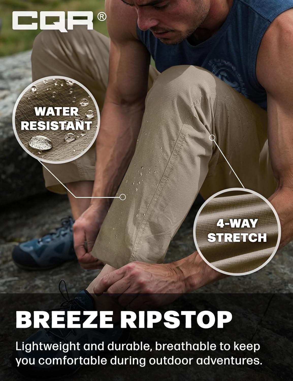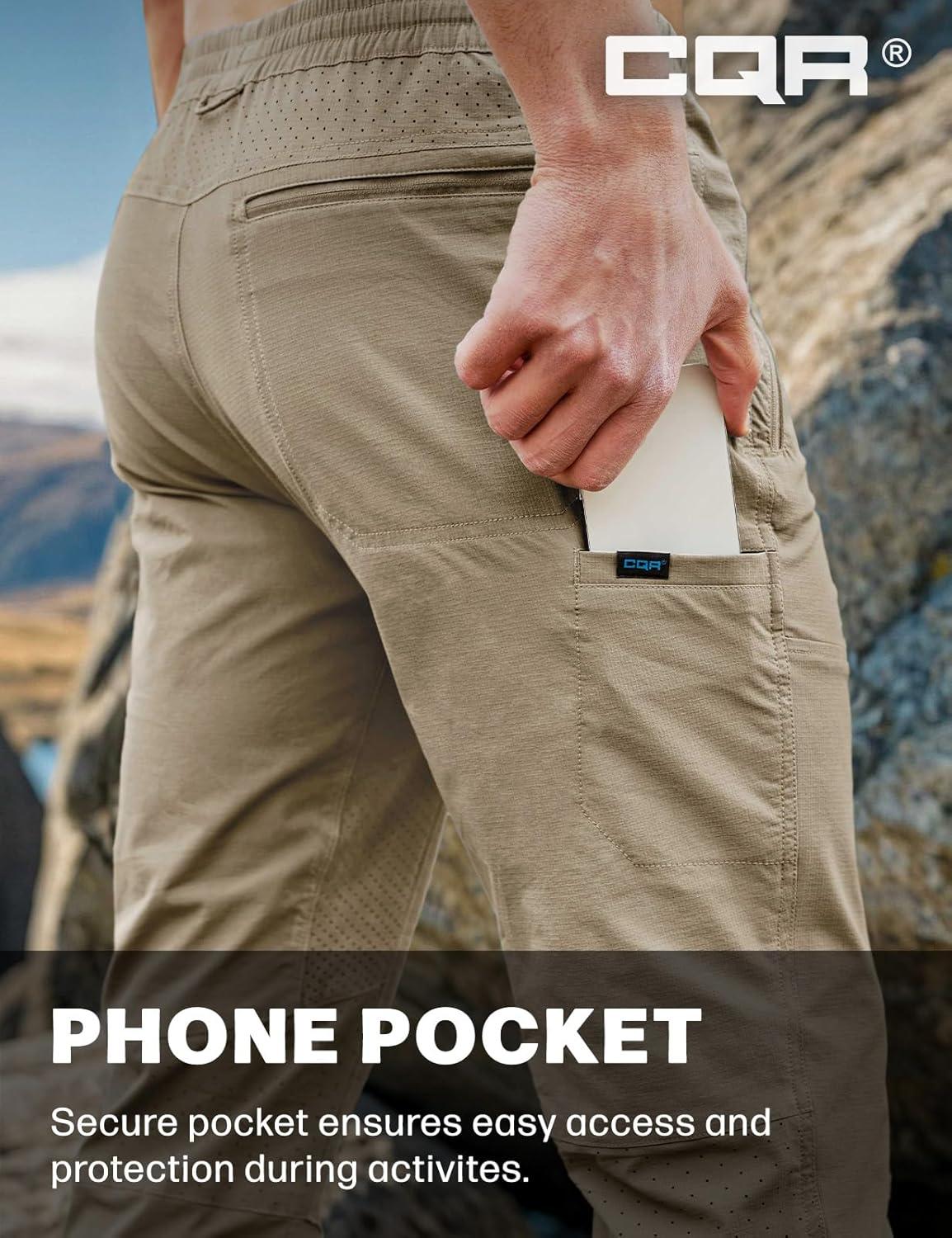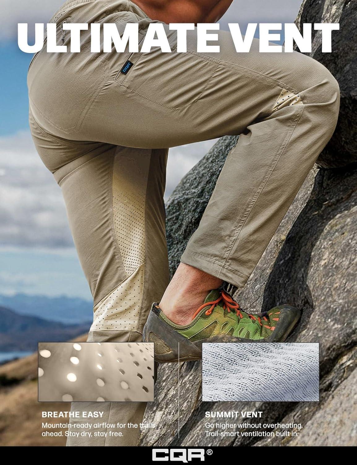 CQR Men’s Lightweight Vent Hiking Pants, Water-Resistant & Breathable Sports Outdoor Athletic Pants with Elastic Waist(Ascend Crux Alamo Khaki)