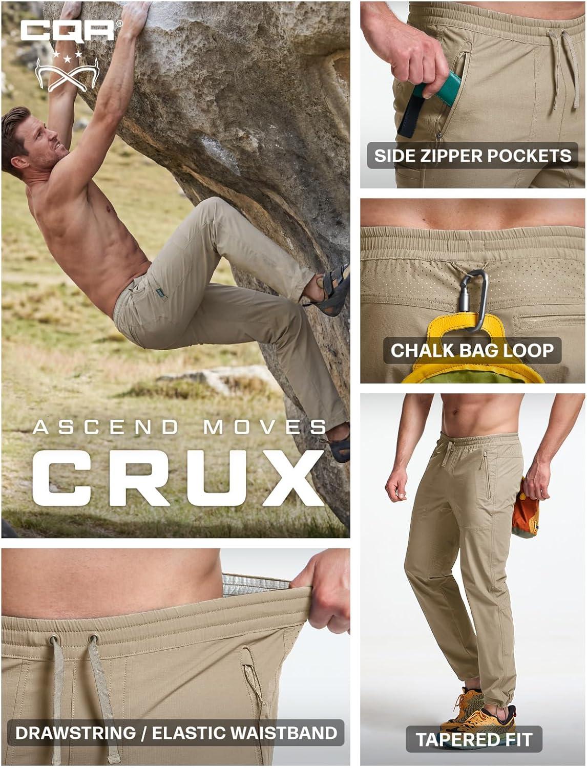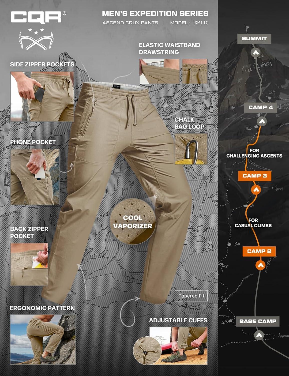 imageCQR Mens Lightweight Vent Hiking Pants WaterResistant amp Breathable Sports Outdoor Athletic Pants with Elastic WaistAscend Crux Alamo Khaki