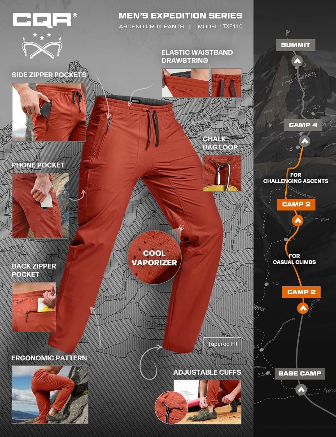 imageCQR Mens Lightweight Vent Hiking Pants WaterResistant amp Breathable Sports Outdoor Athletic Pants with Elastic WaistAscend Crux Burnt Orange