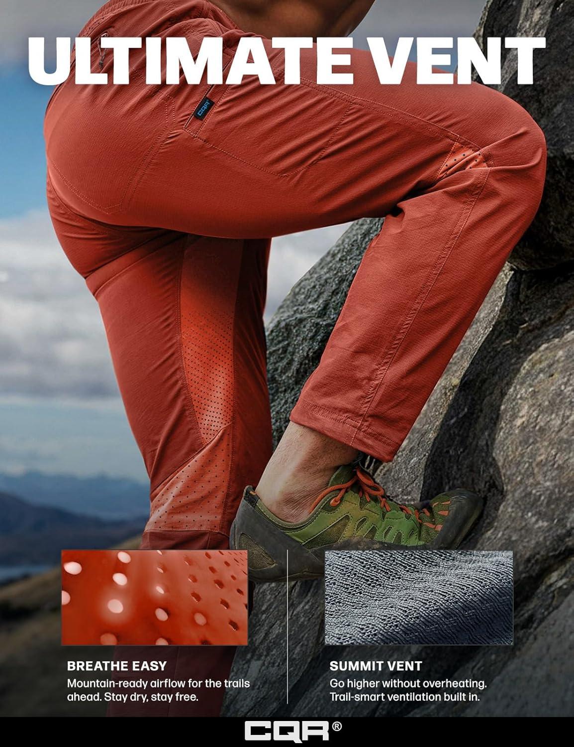 CQR Men’s Lightweight Vent Hiking Pants, Water-Resistant & Breathable Sports Outdoor Athletic Pants with Elastic Waist(Ascend Crux Burnt Orange)