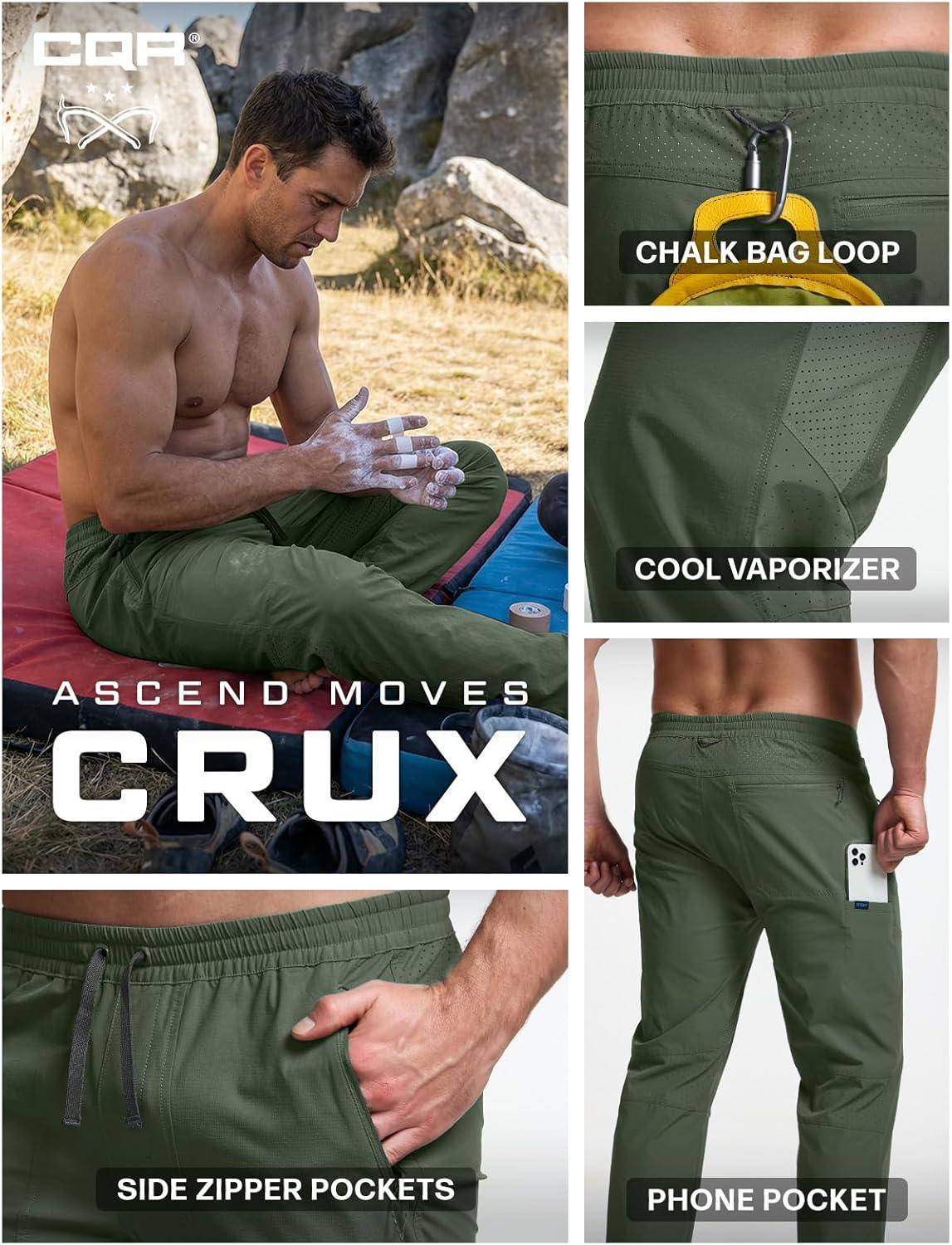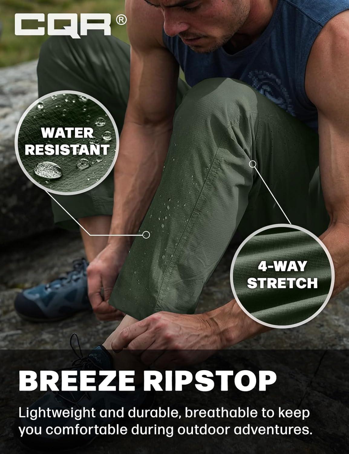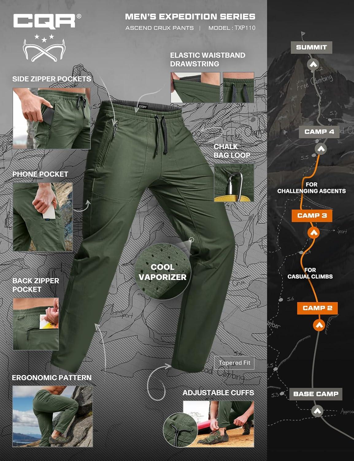 imageCQR Mens Lightweight Vent Hiking Pants WaterResistant amp Breathable Sports Outdoor Athletic Pants with Elastic WaistAscend Crux Lichen