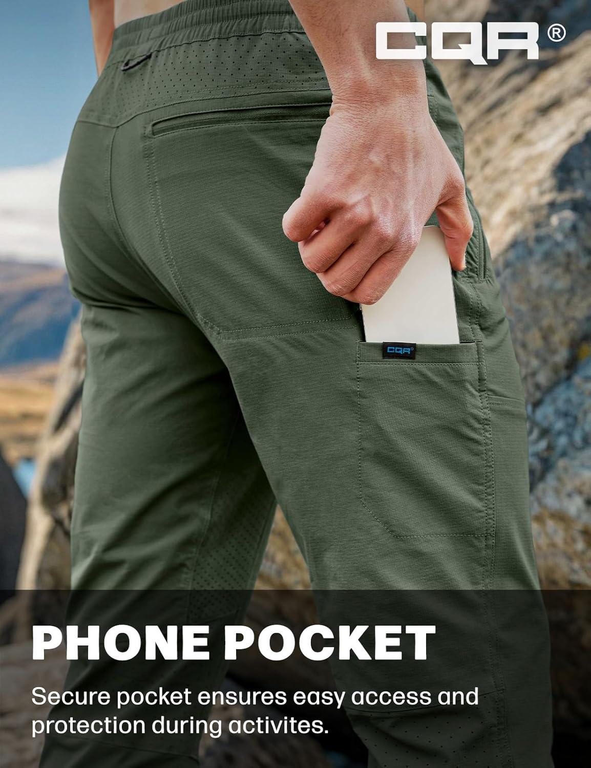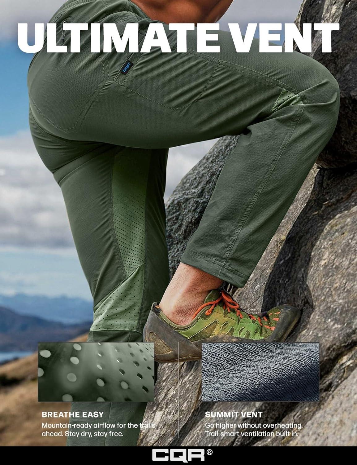 CQR Men's Lightweight Vent Hiking Pants, Water-Resistant & Breathable Sports Outdoor Athletic Pants with Elastic Waist(Ascend Crux Lichen)