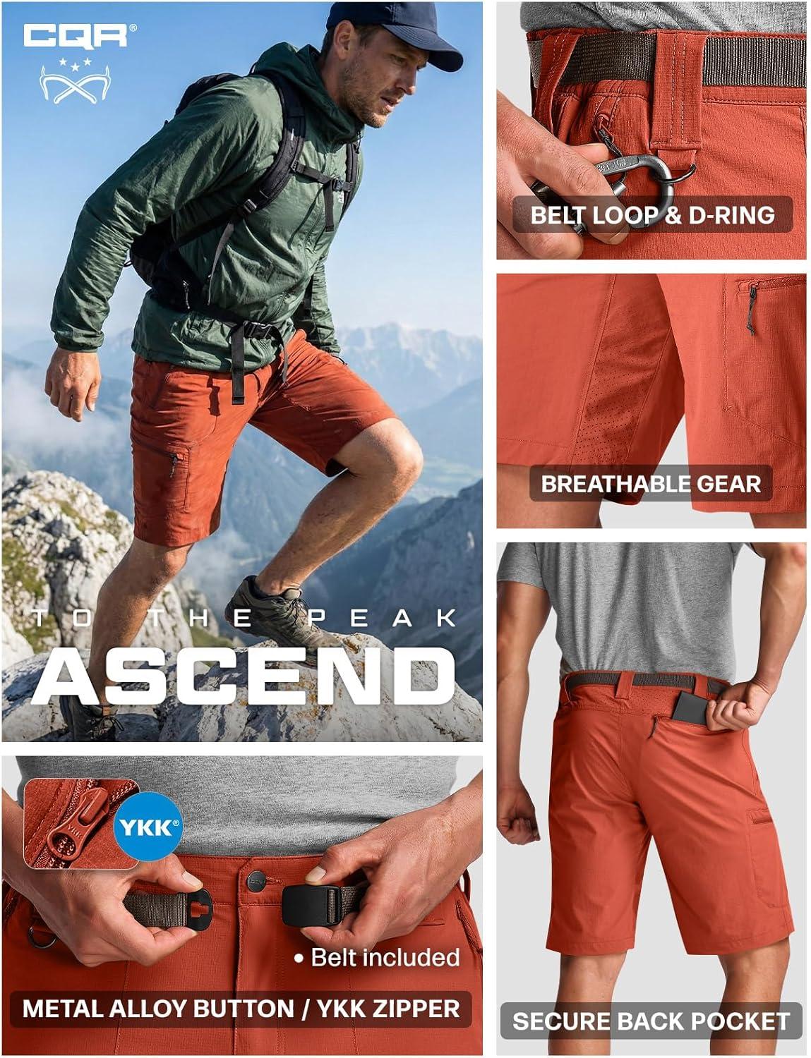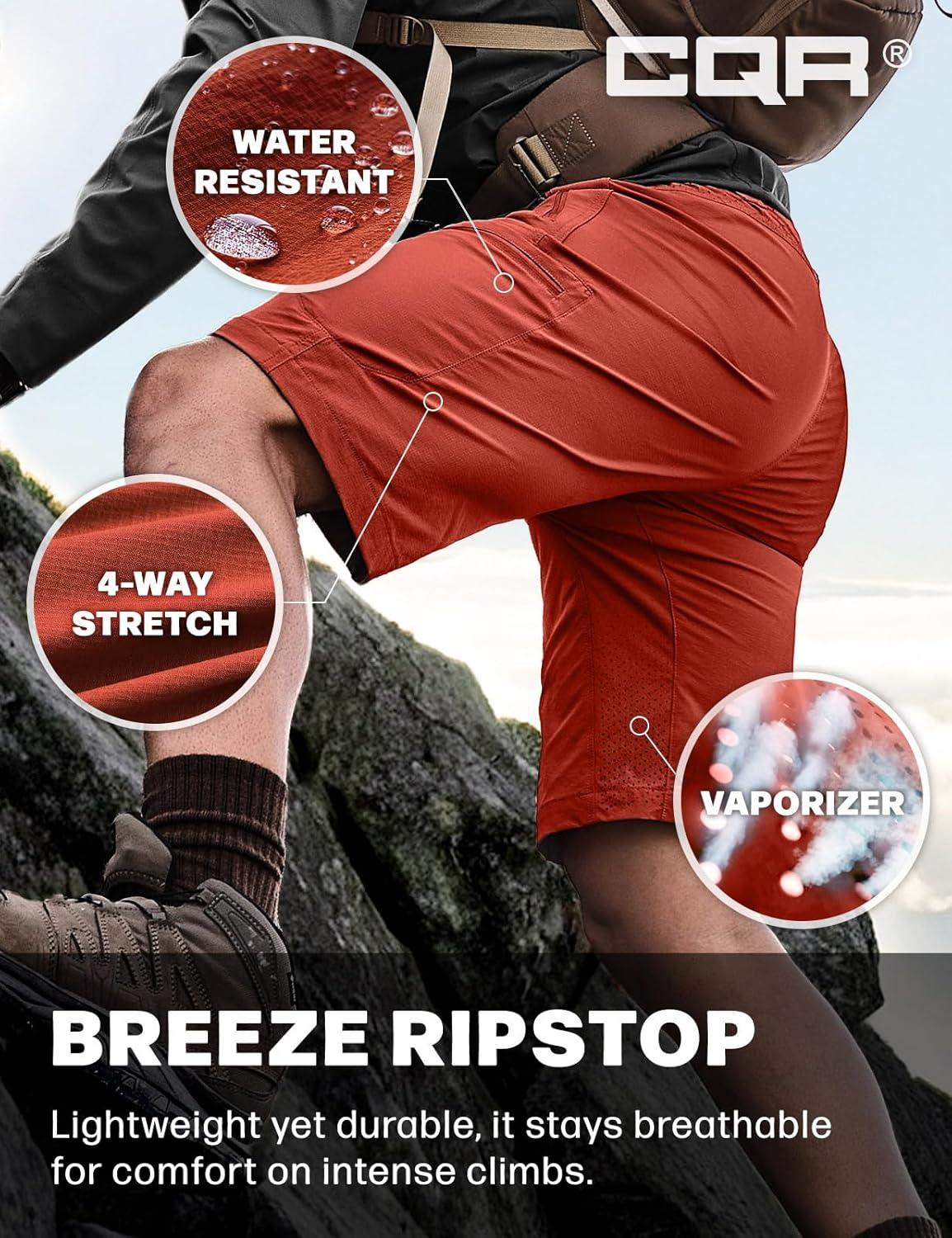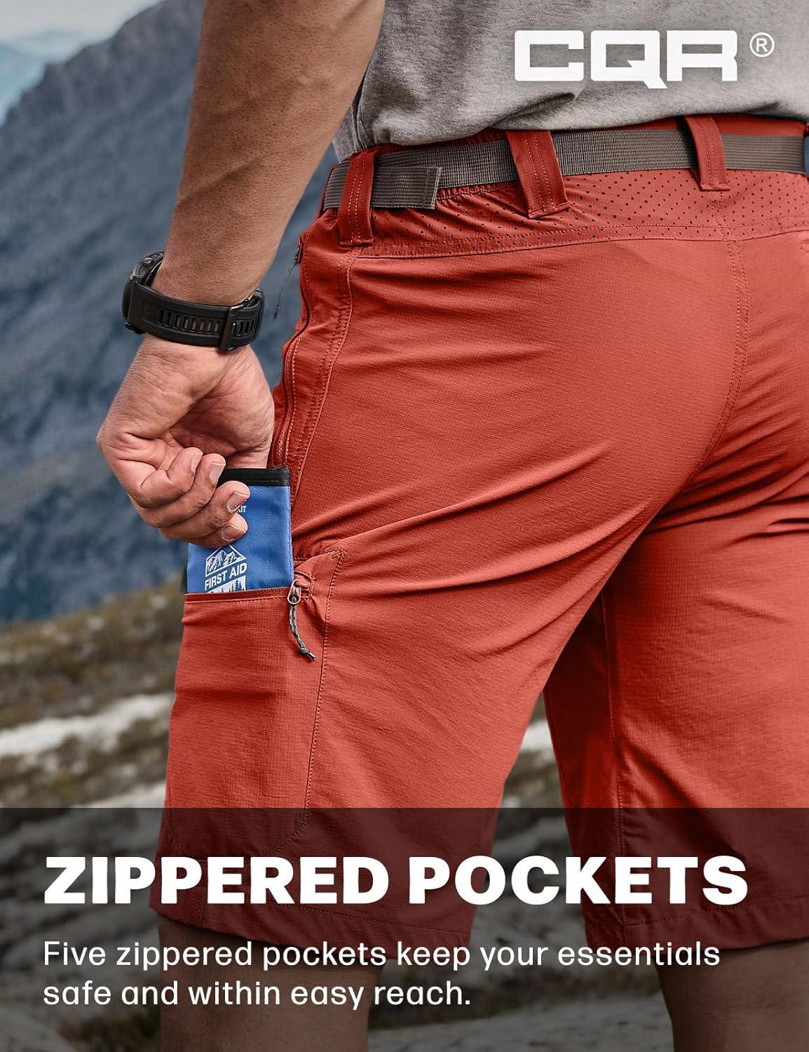 imageCQR Mens Quick Dry Stretch Hiking Cargo Shorts Lightweight Water Resistant Tactical Casual Golf amp Outdoor with PocketsPeak Burnt Orange