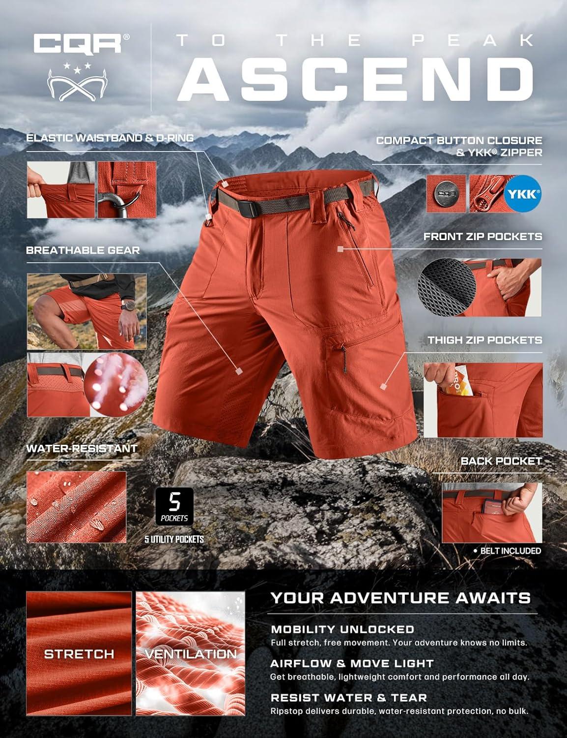CQR Men’s Quick Dry Stretch Hiking Cargo Shorts, Lightweight Water Resistant Tactical Casual, Golf & Outdoor with Pockets(Peak Burnt Orange)
