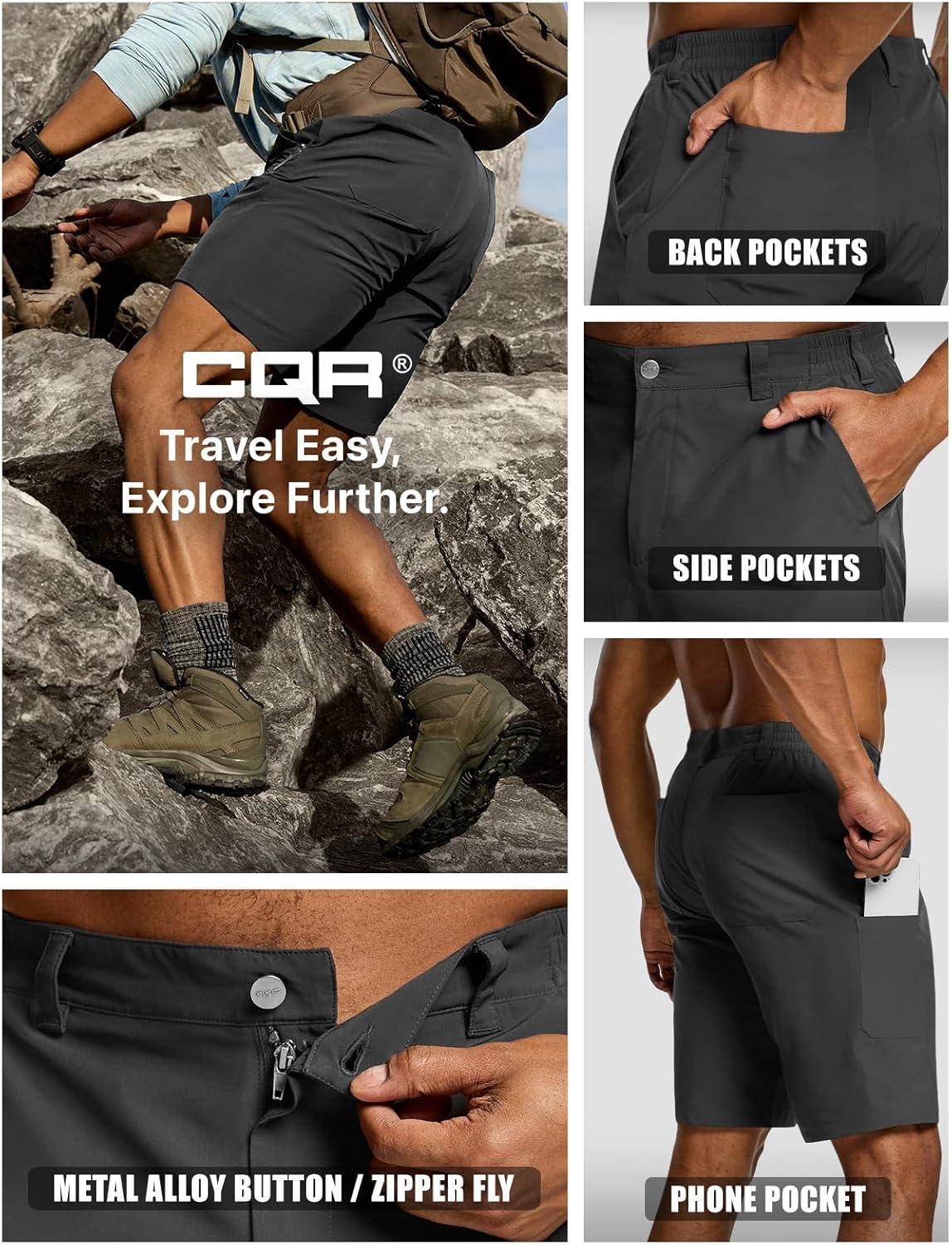 imageCQR Mens Quick Dry Stretch Hiking Cargo Shorts Lightweight Water Resistant Tactical Casual Golf amp Outdoor with PocketsRoutine Charcoal