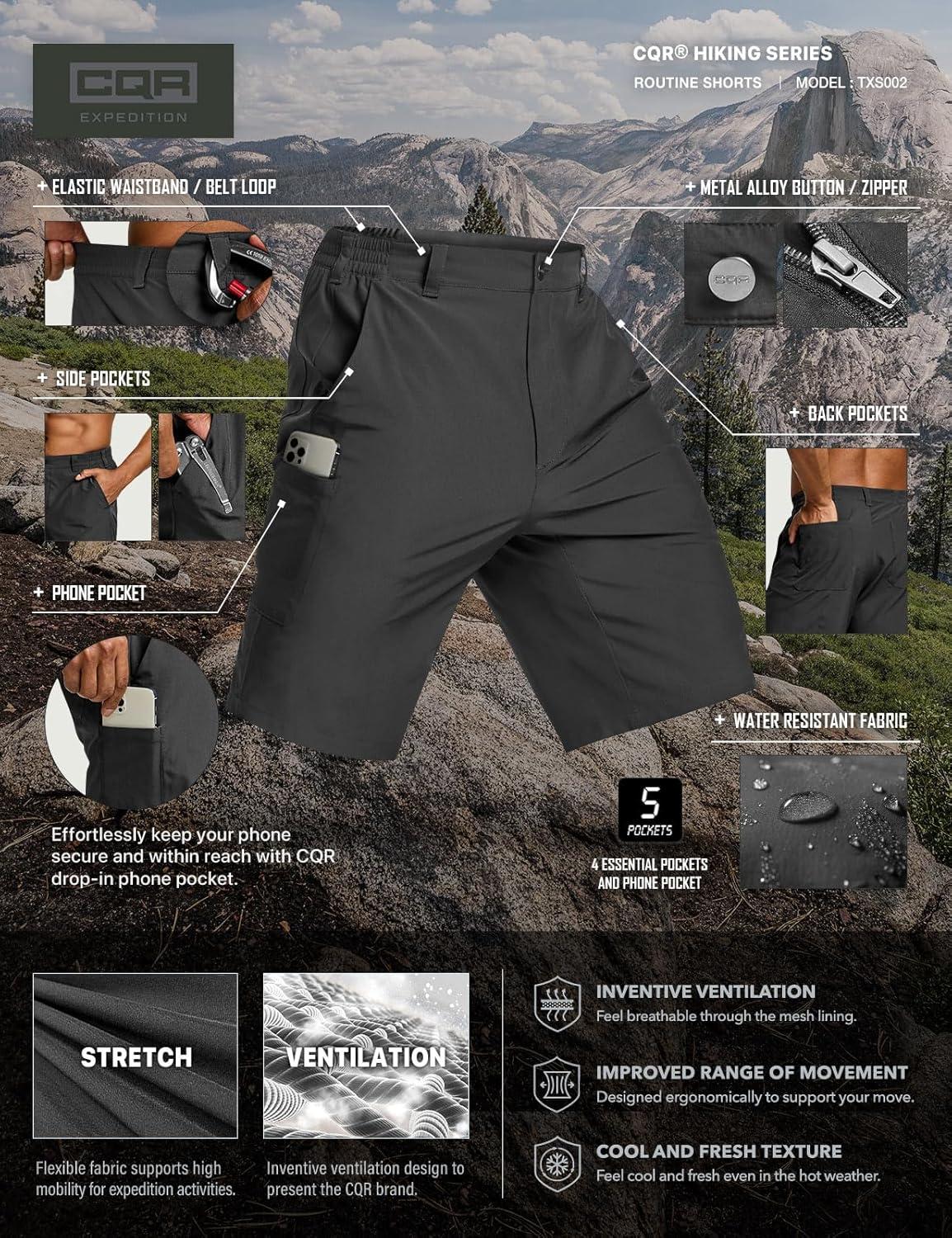 imageCQR Mens Quick Dry Stretch Hiking Cargo Shorts Lightweight Water Resistant Tactical Casual Golf amp Outdoor with PocketsRoutine Black