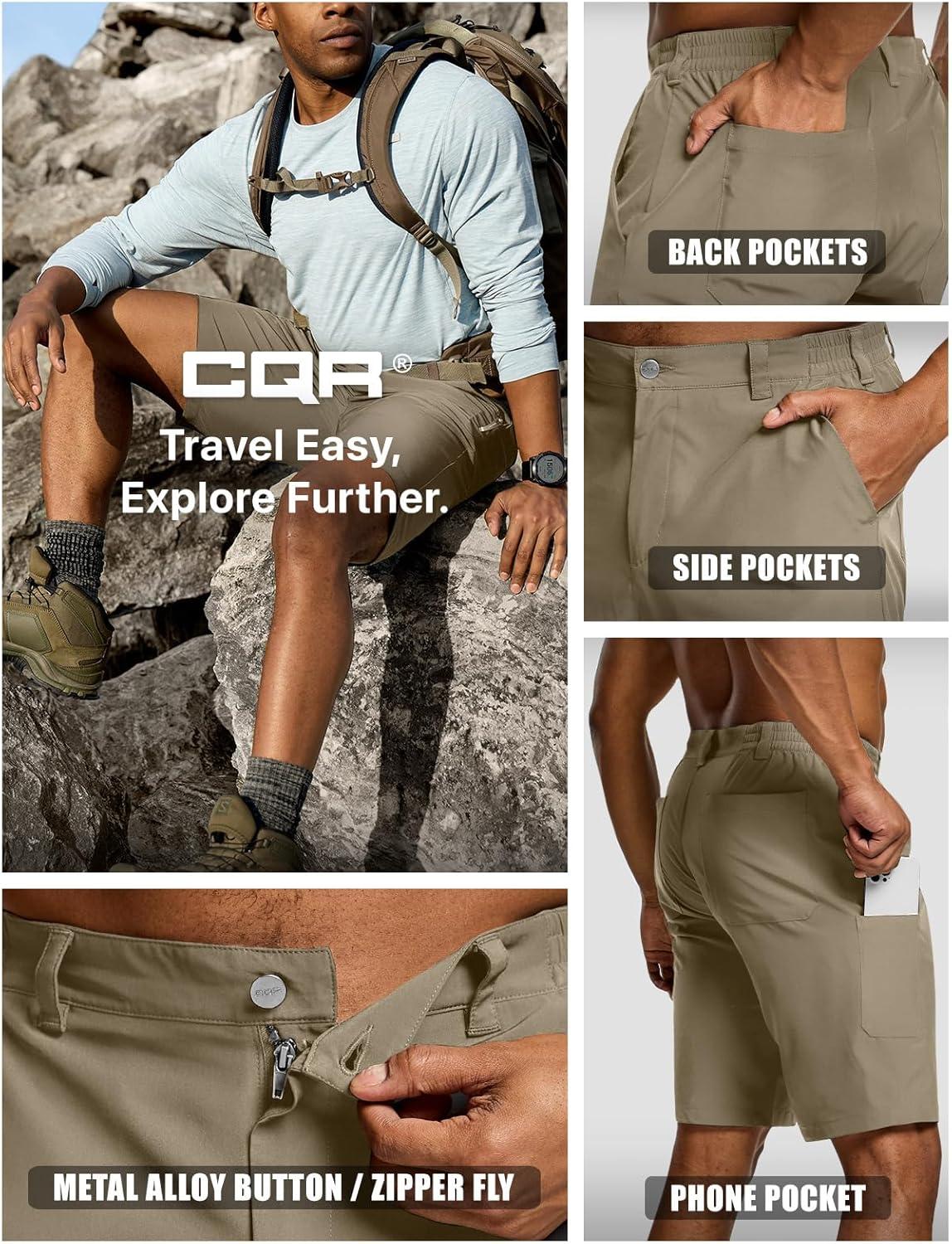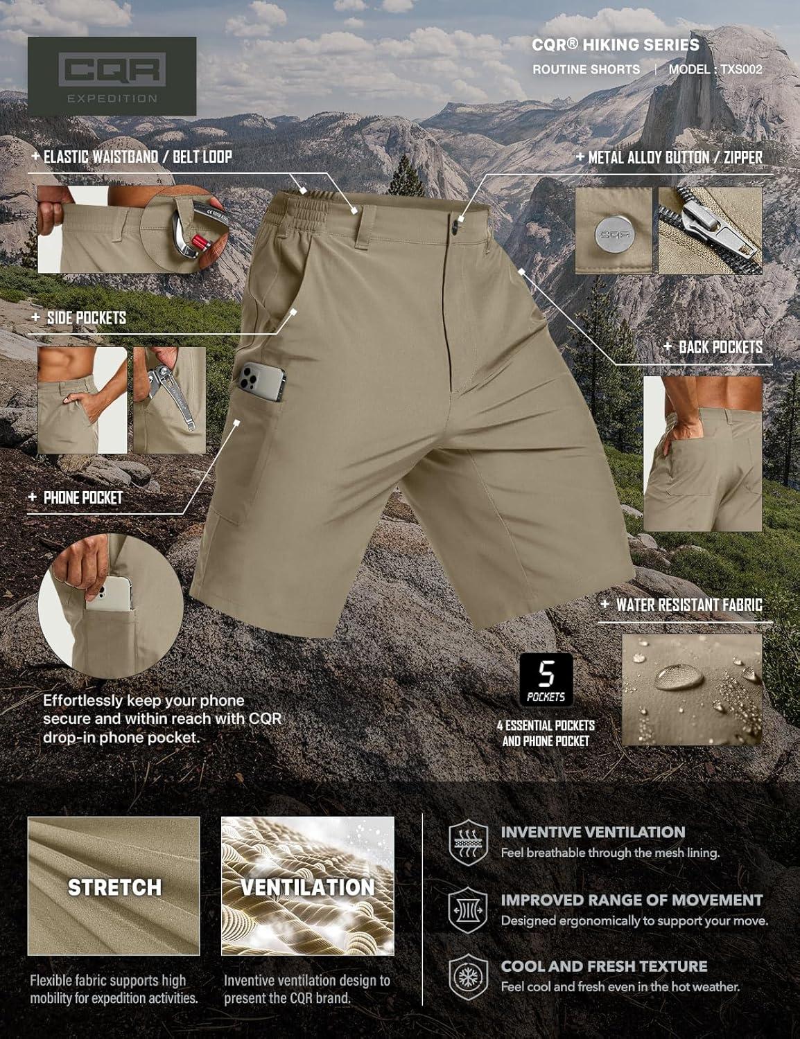 CQR Men's Quick Dry Stretch Hiking Cargo Shorts, Lightweight Water Resistant Tactical Casual, Golf & Outdoor with Pockets(Routine Sandstorm)