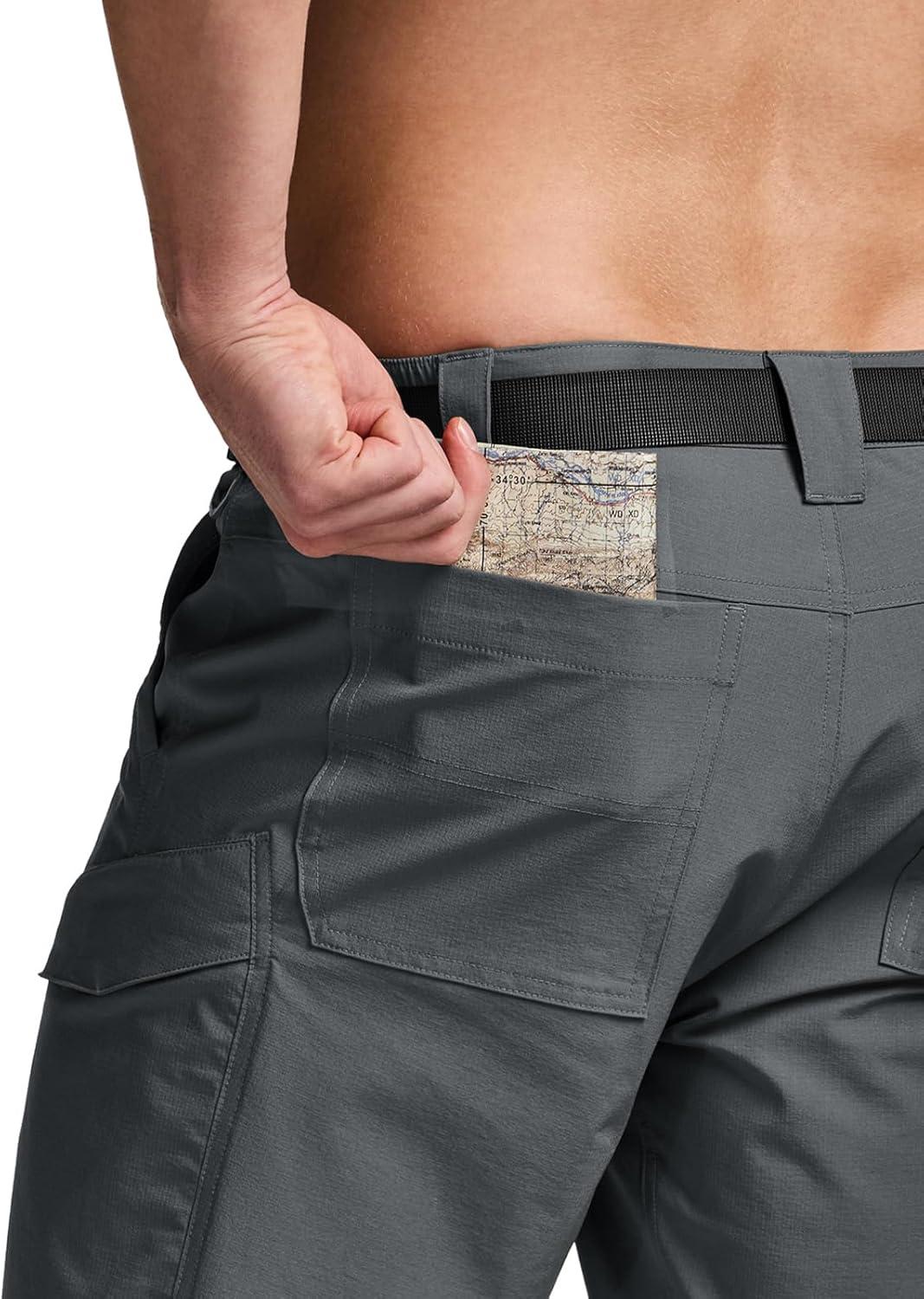 CQR Men's Quick Dry Stretch Hiking Cargo Shorts, Lightweight Water Resistant Tactical Casual, Golf & Outdoor with Pockets(Shendo Trail W/Belt Carbon Grey)