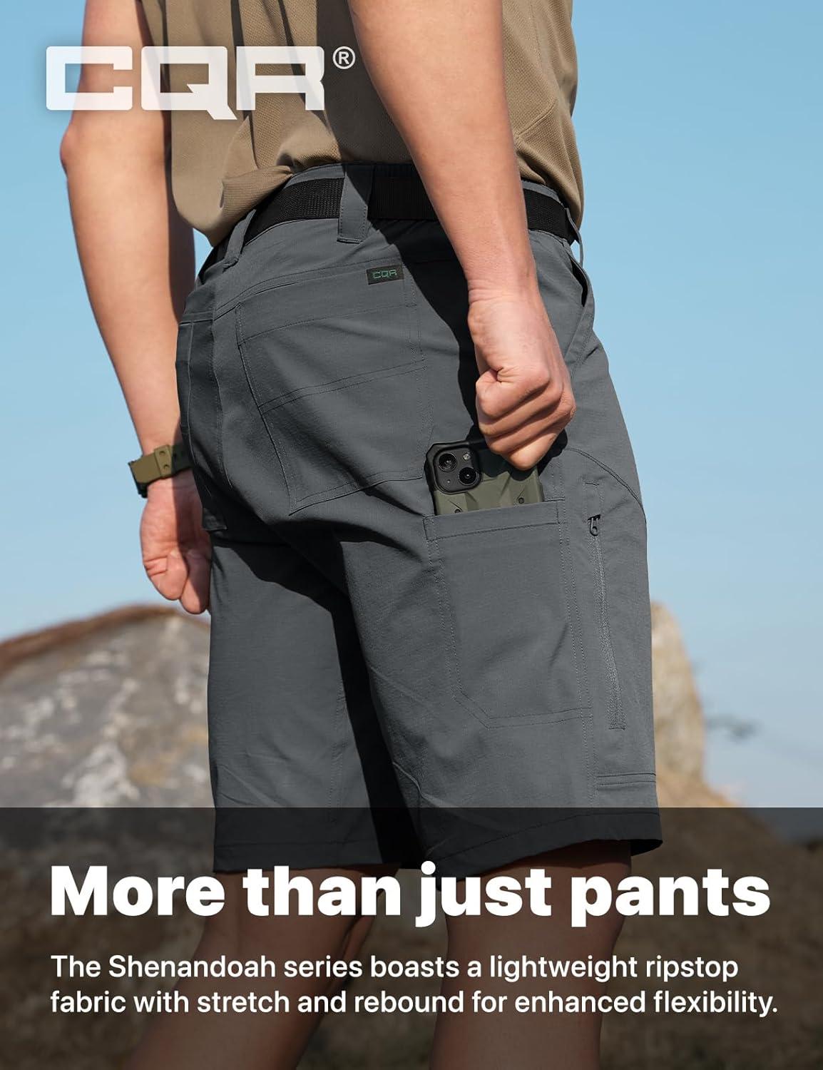 CQR Men’s Quick Dry Stretch Hiking Cargo Shorts, Lightweight Water Resistant Tactical Casual, Golf & Outdoor with Pockets(Rocky Lichen)